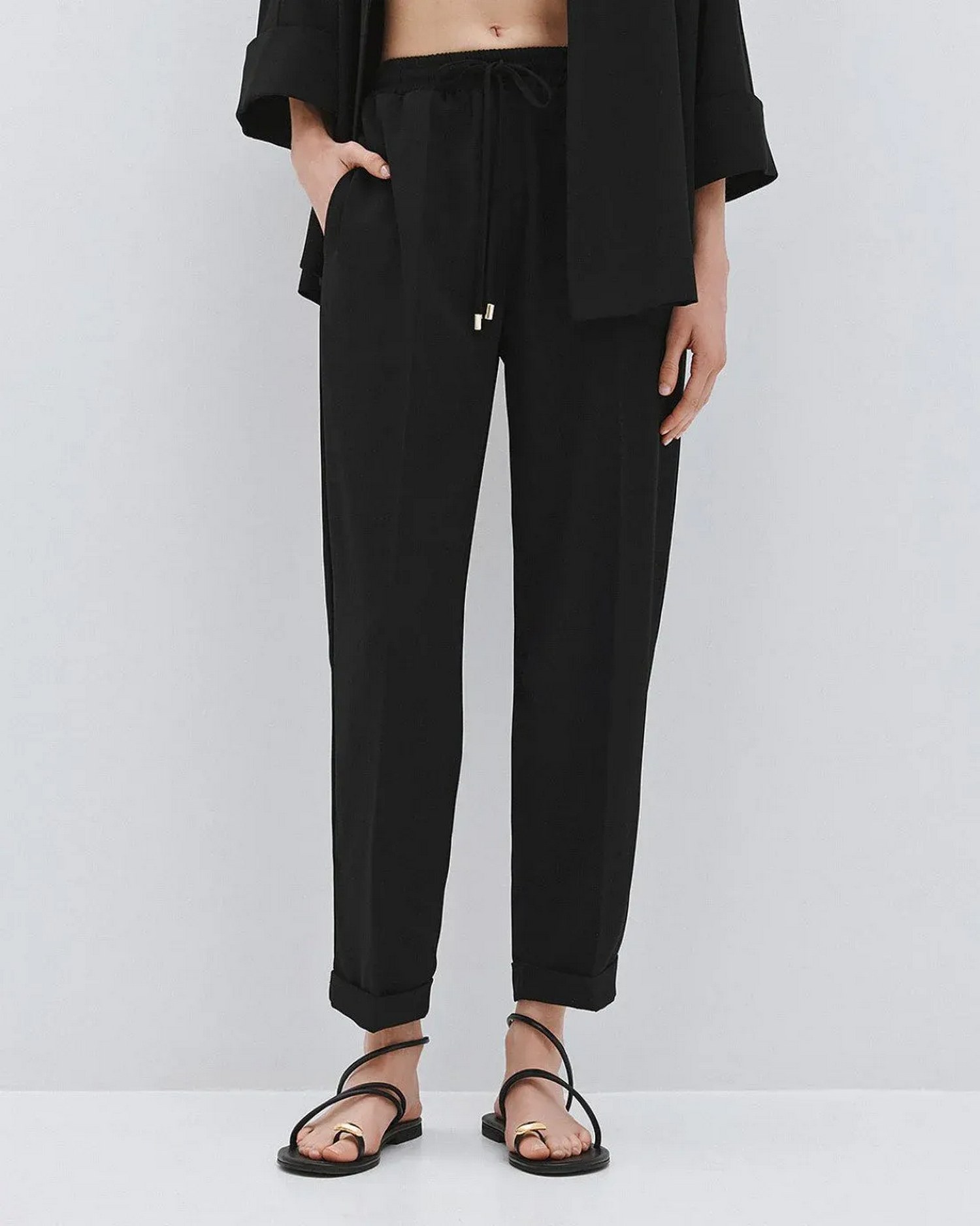 Pantaloni con elastico in vita e coulisse.