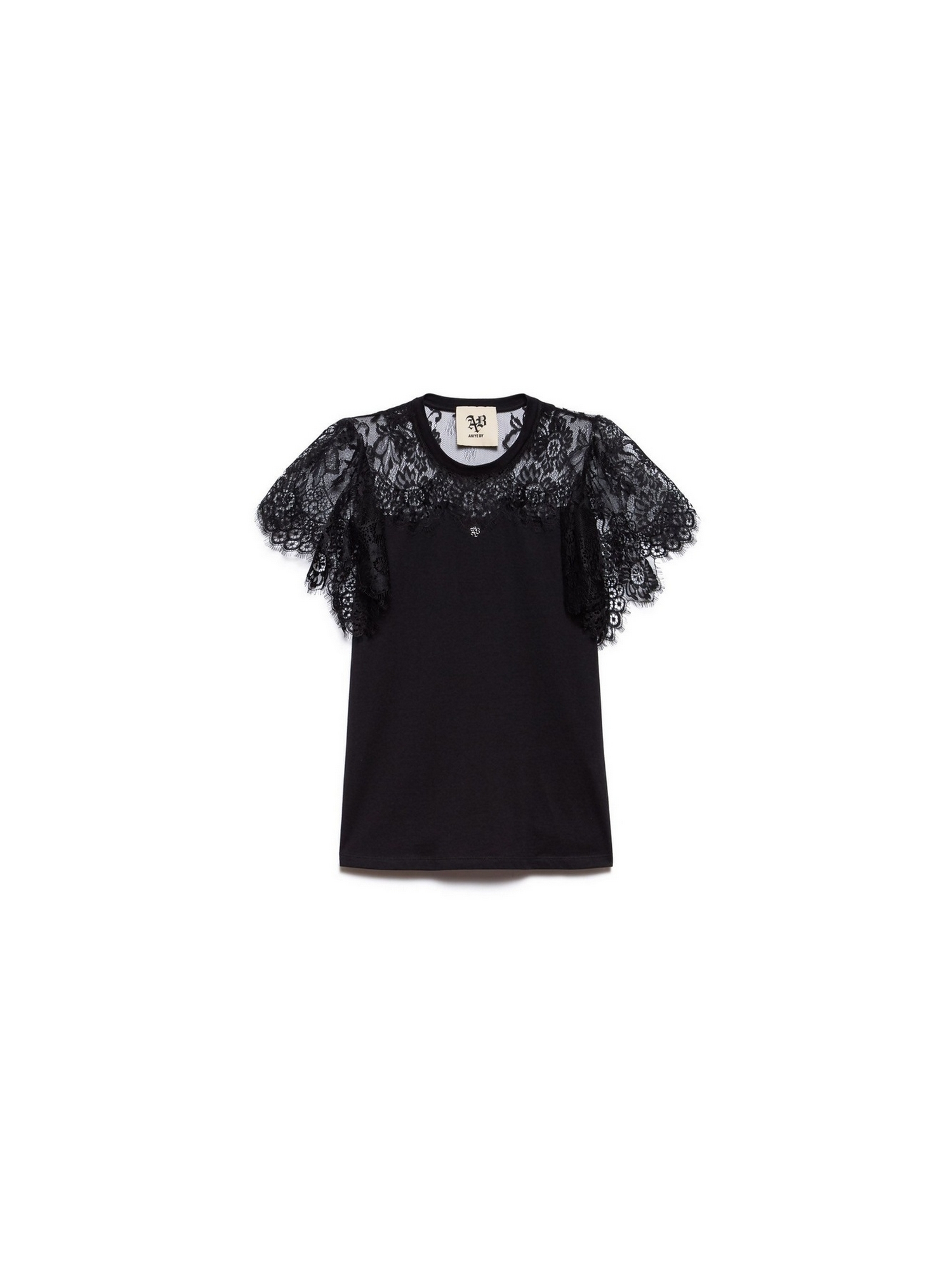 T-shirt con inserto frontale e maniche svasate in pizzo.