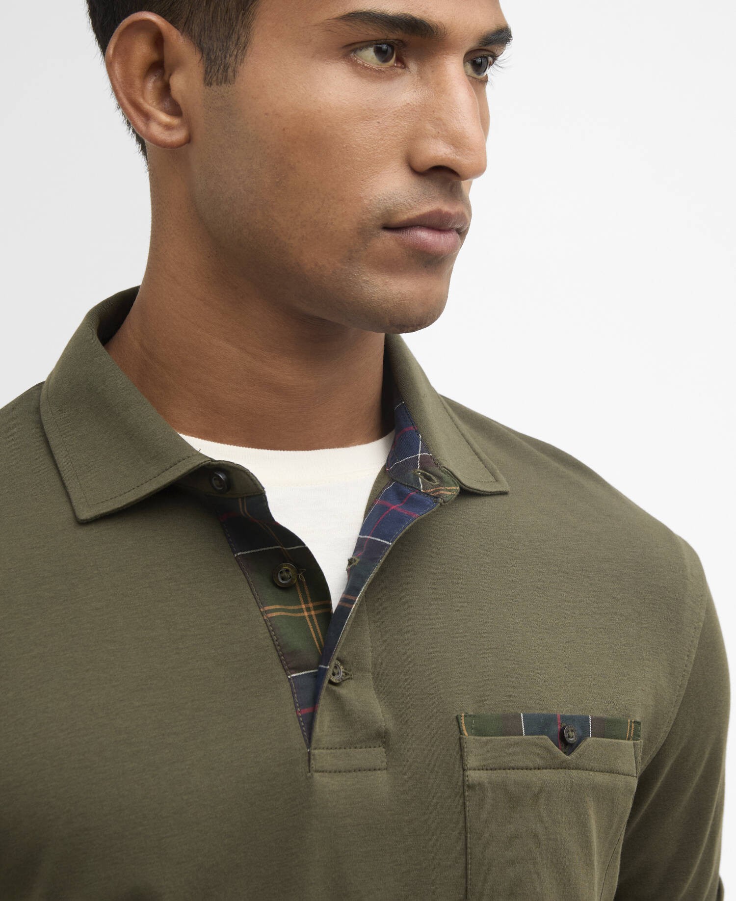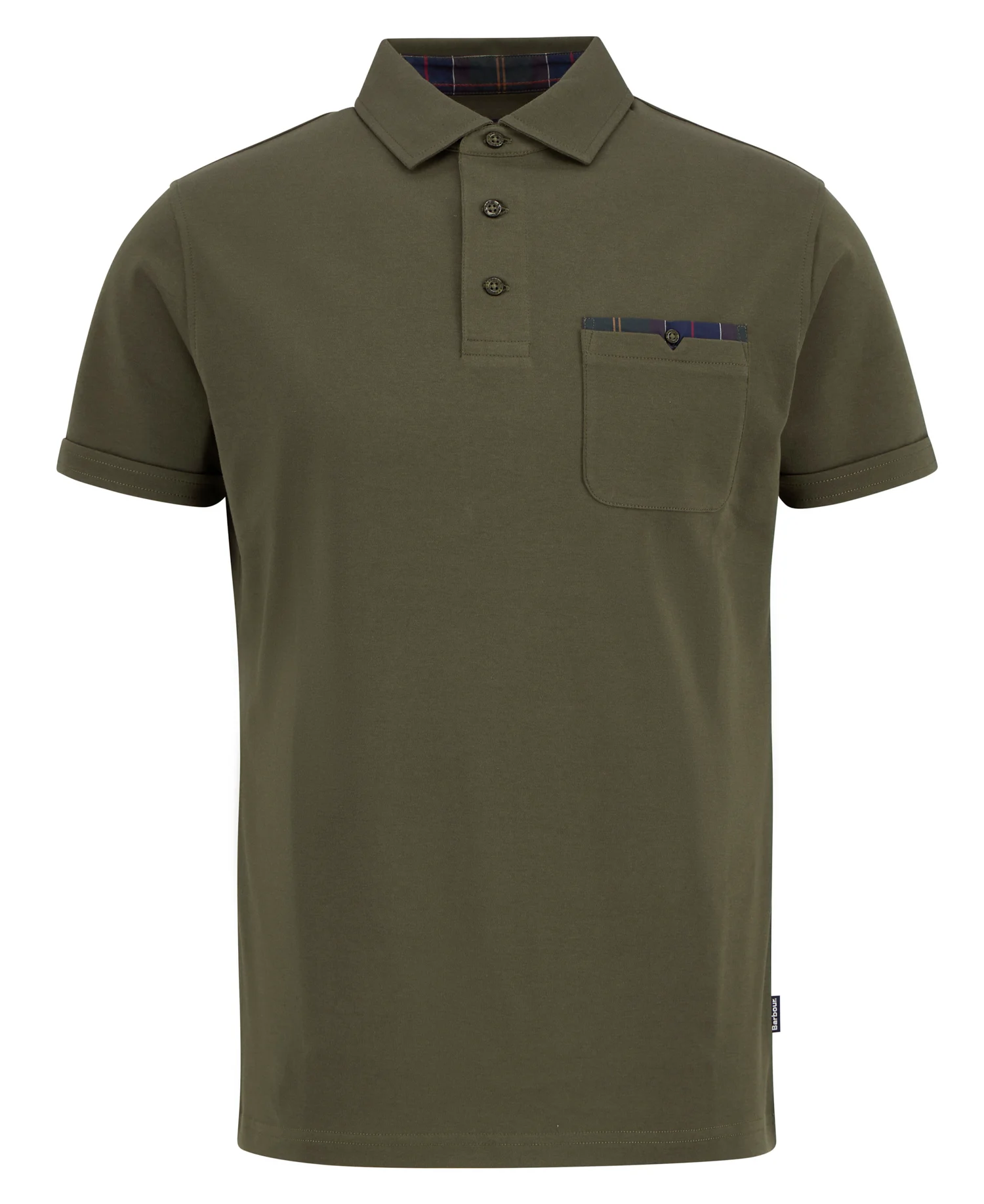 Polo in cotone interlock con finiture in tartan a contrasto ed etichetta con logo sull'orlo a sinistra.