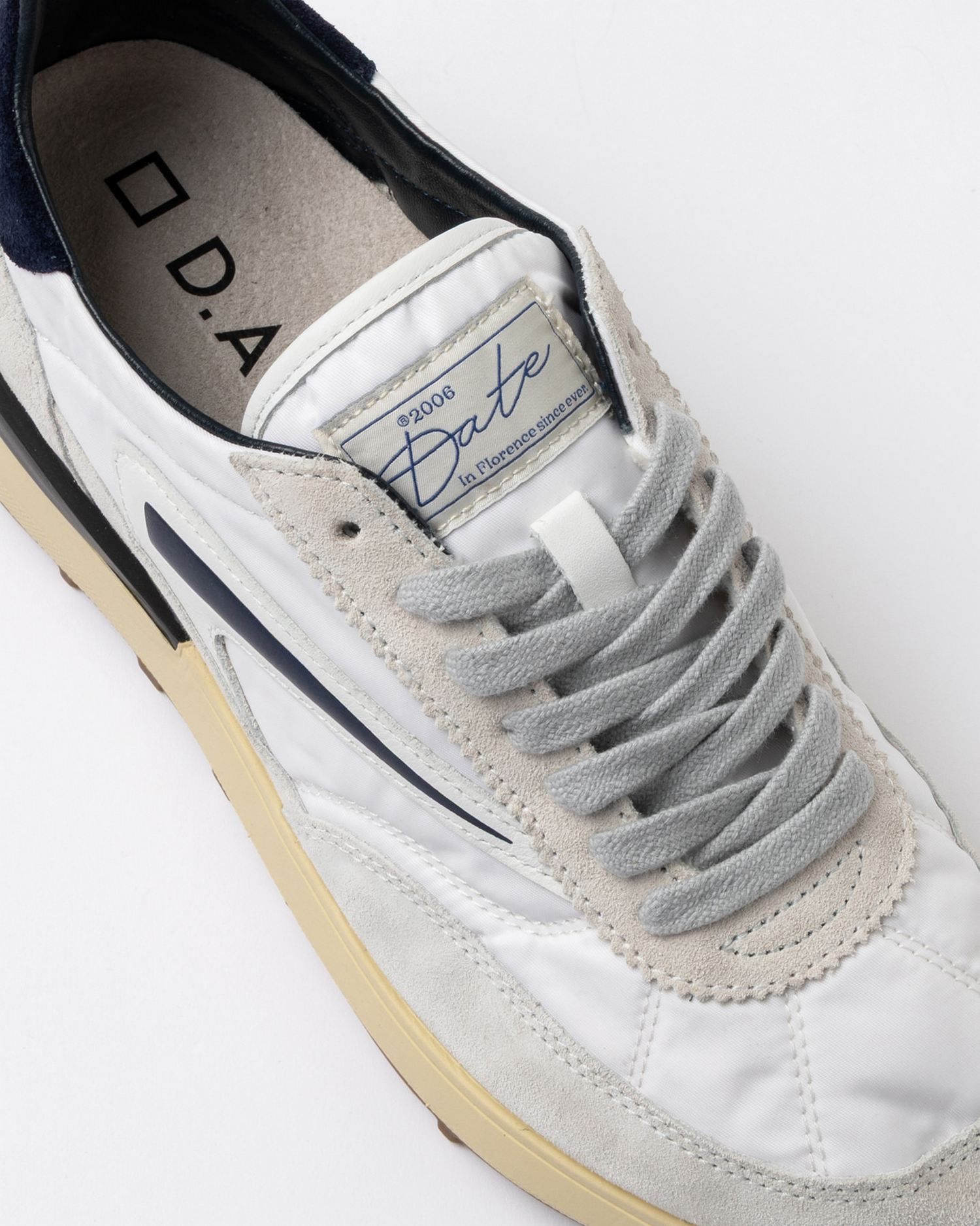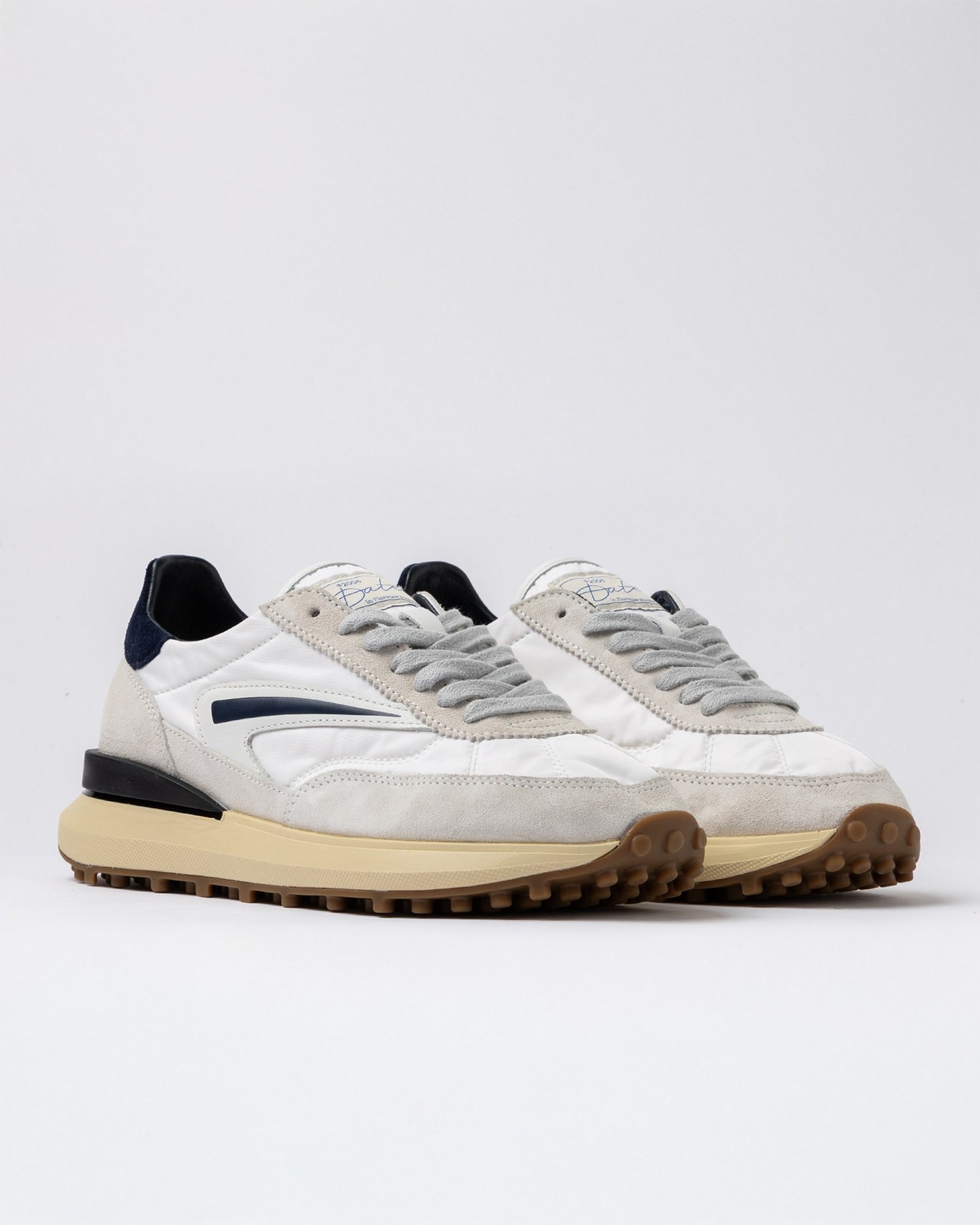 Running sneakers in nylon con dettagli in suede tono su tono, lacci in cotone, logo quadrato impresso sul talloncino in suede ed inserto sul lato esterno in pelle.
