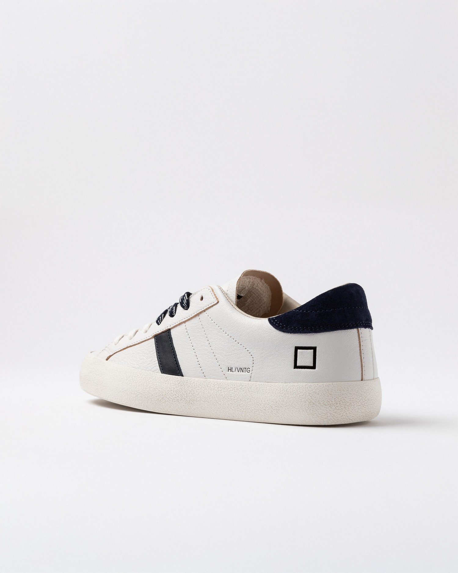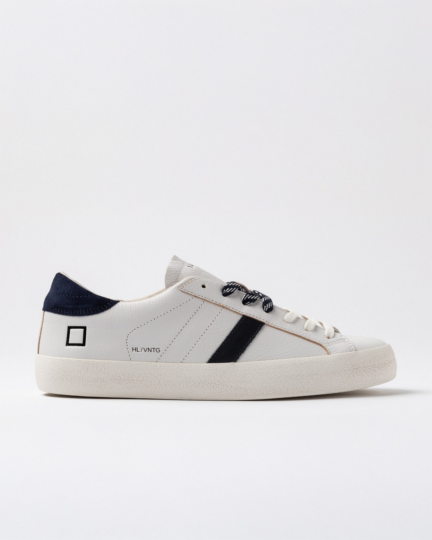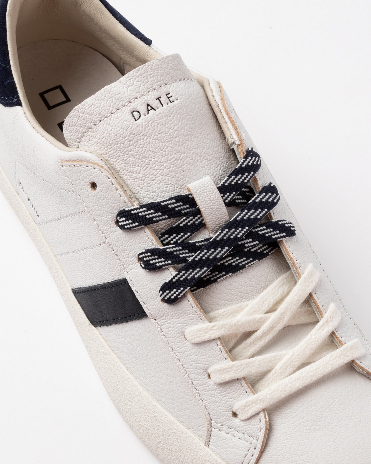 Sneakers bassa in pelle martellata con linguetta in pelle in tono, lacci in cotone in due diverse colazioni, logo quadrato impresso lateralmente, banda laterale in pelle e talloncino posteriore in suede.