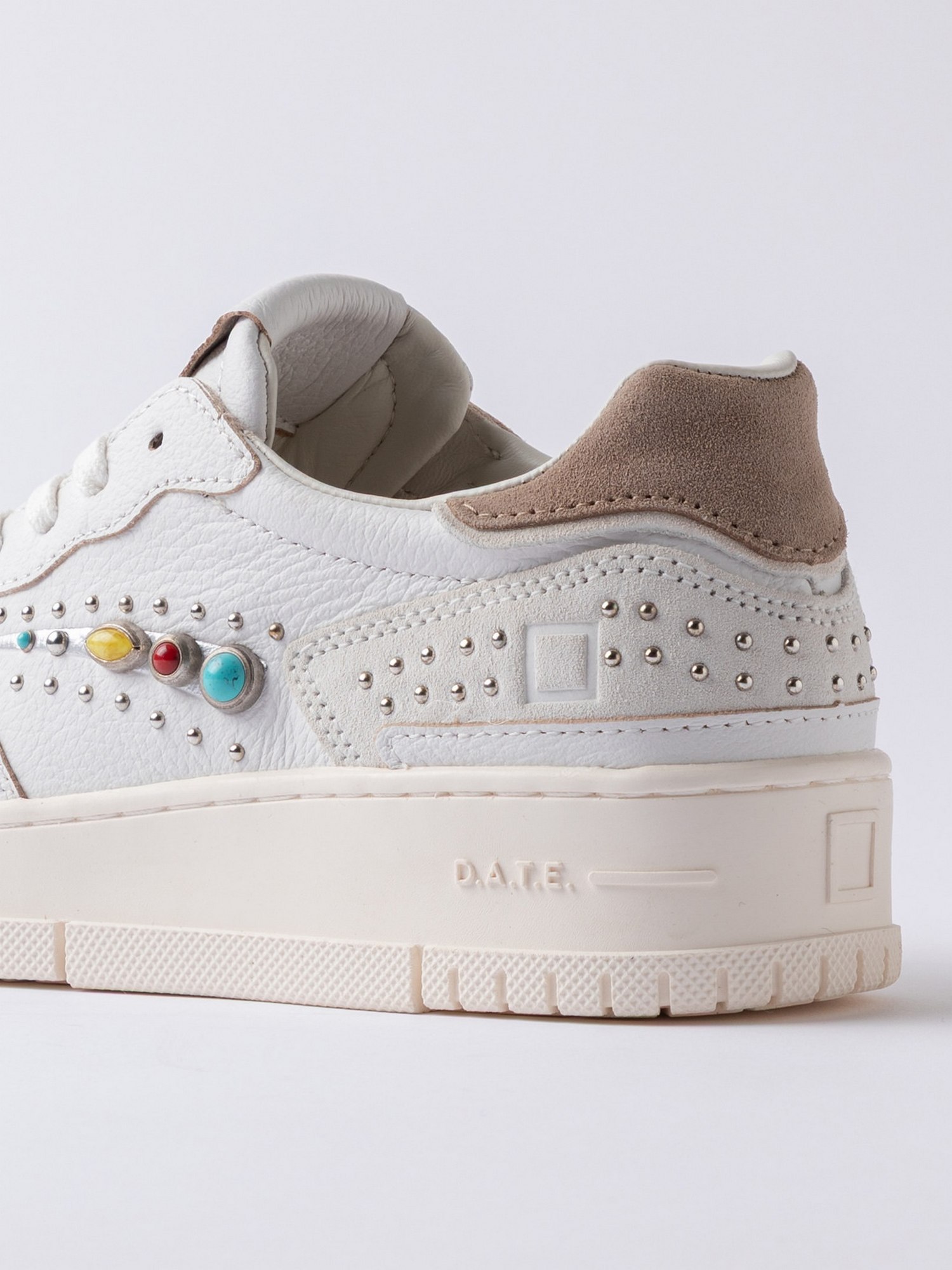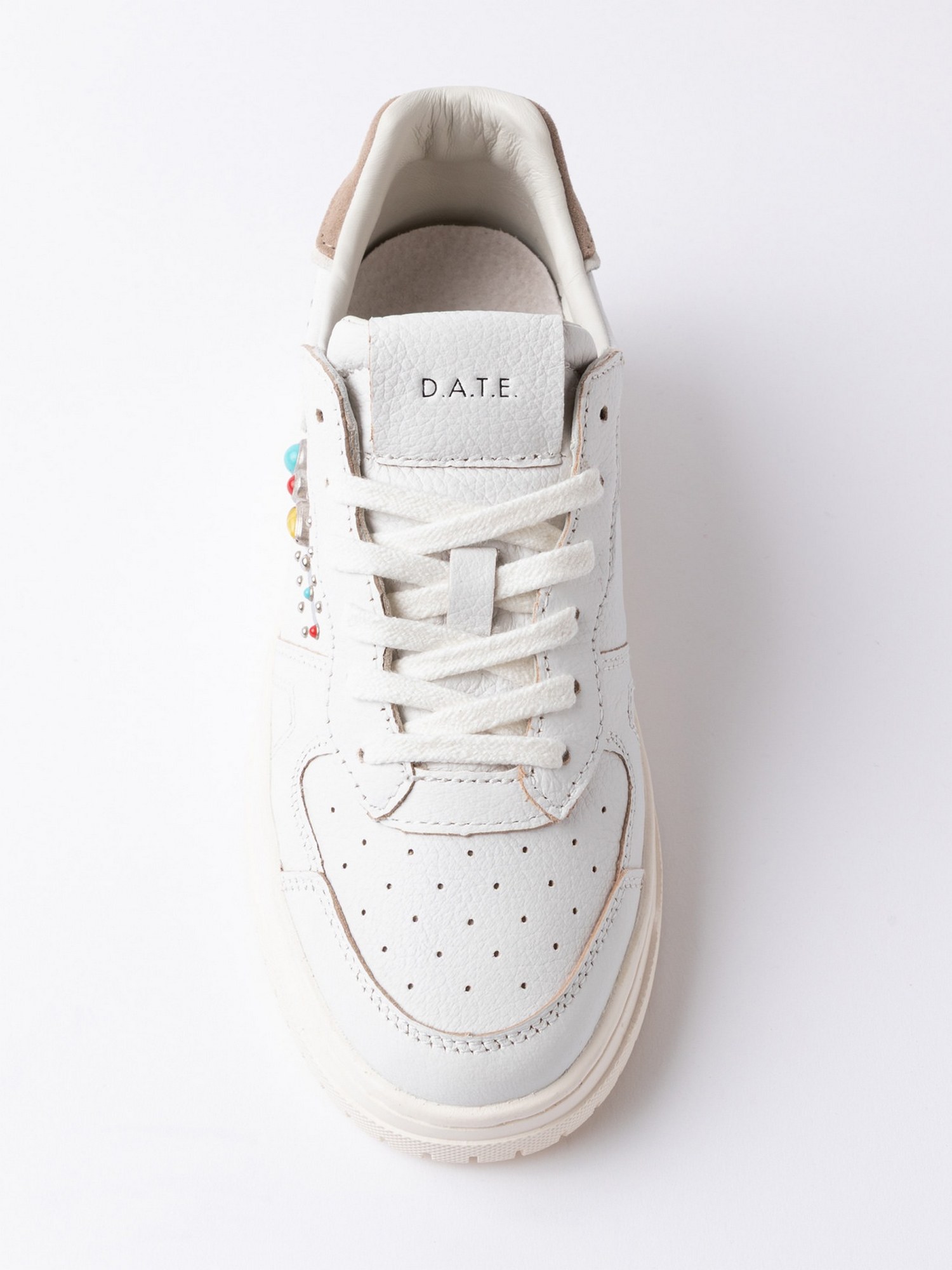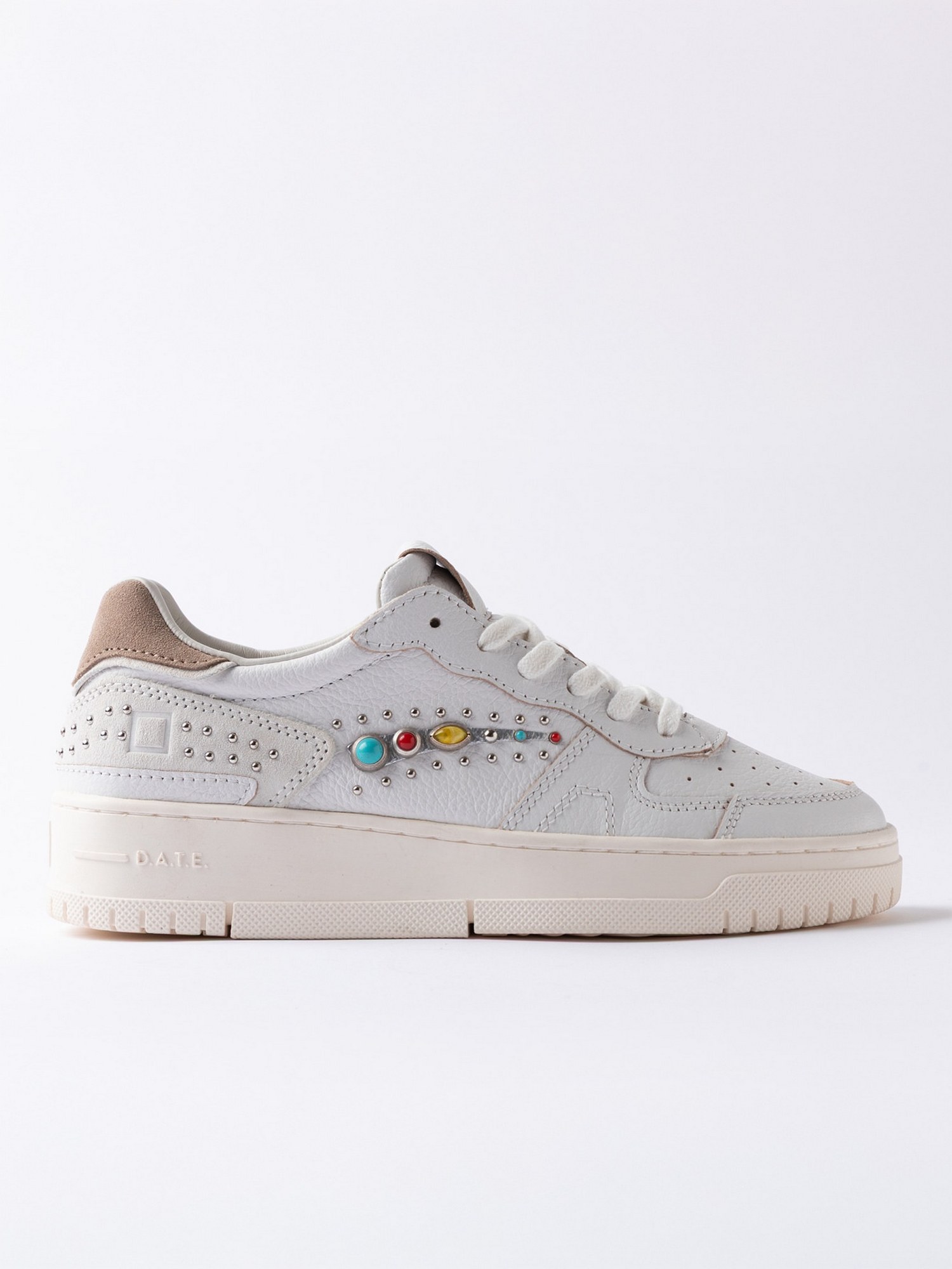Sneakers in pelle martellata con punta traforata, logo D.A.T.E. impresso sulla linguetta, talloncino in suede, fodera in pelle e spugna di cotone.