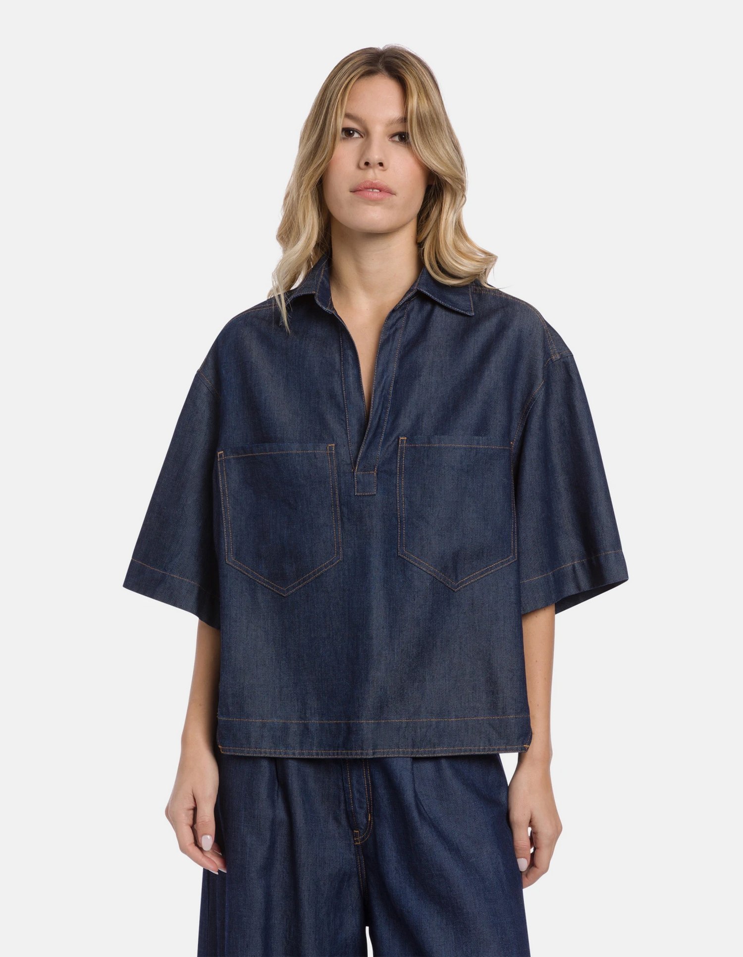 Camicia regular a maniche corte con scollo a polo e tasche applicate sul davanti.