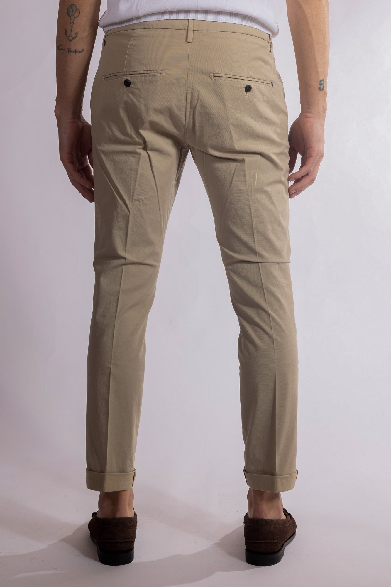 Pantaloni slim chino con vita bassa e tasche a filetto posteriori.