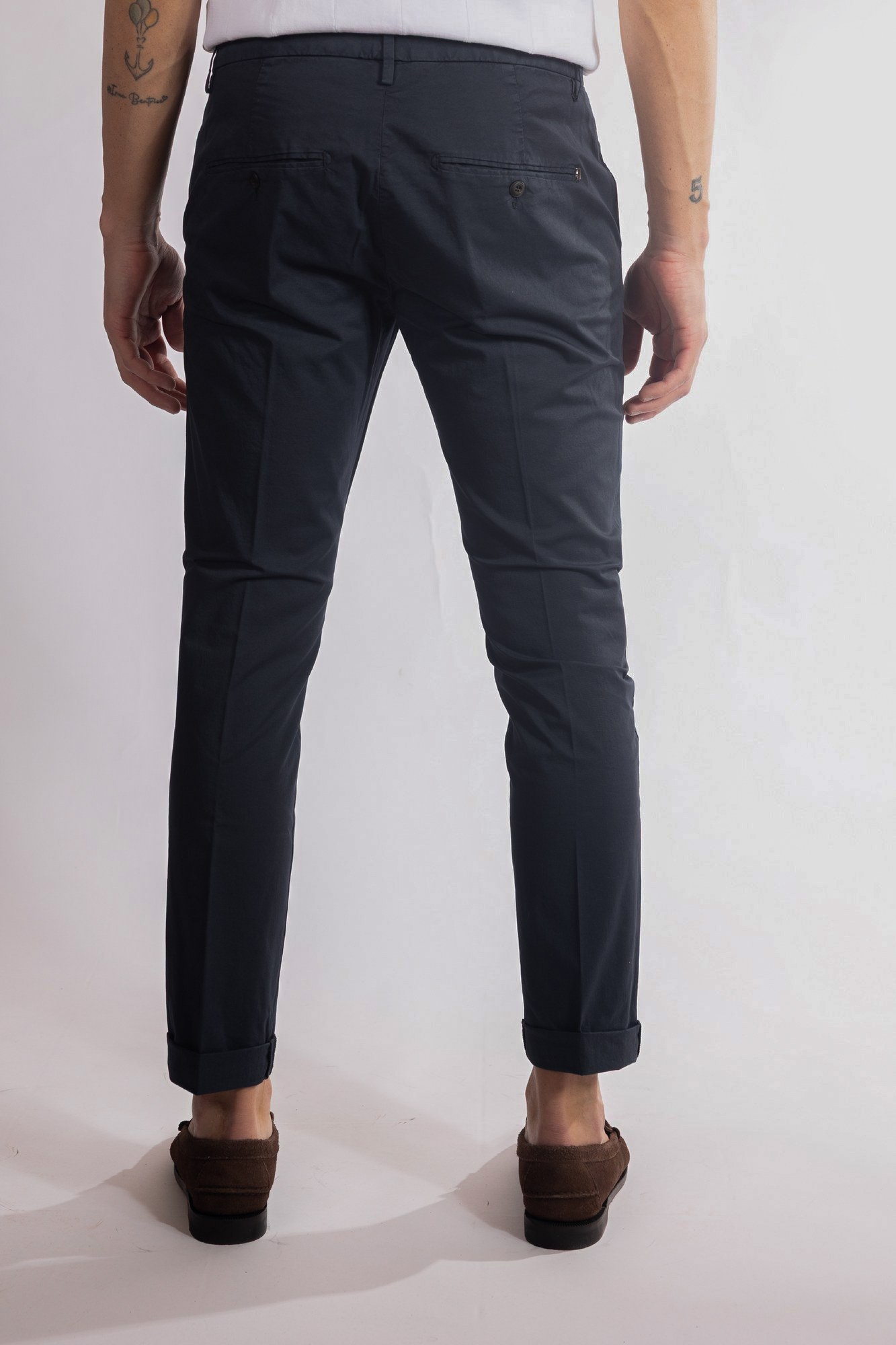 Pantaloni slim chino con vita bassa e tasche a filetto posteriori.
