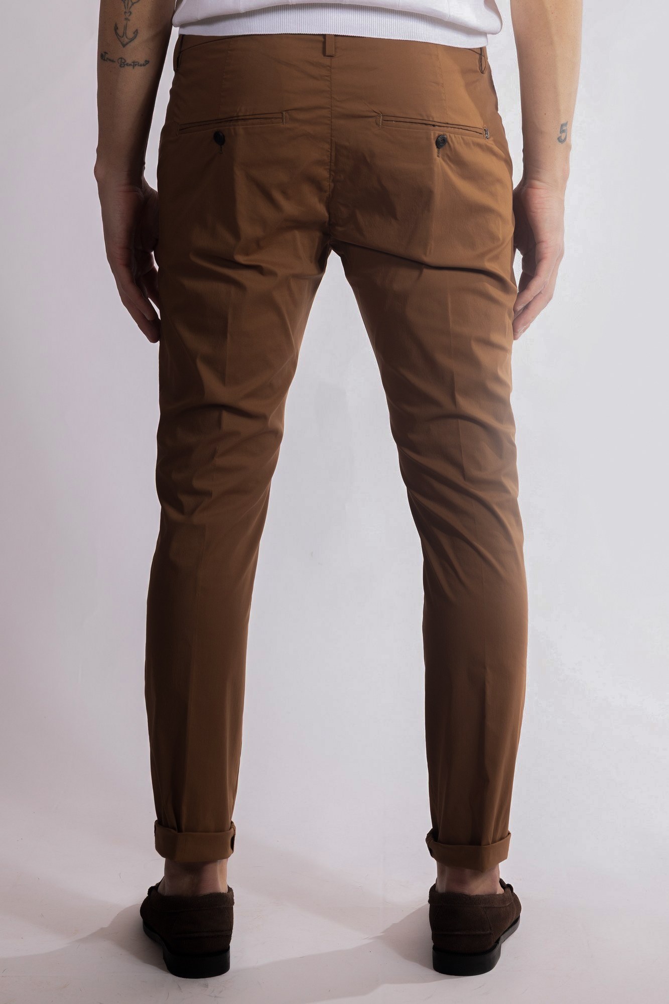 Pantaloni slim chino con vita bassa e tasche a filetto posteriori.
