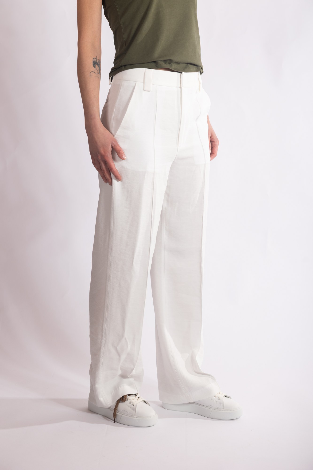 Pantaloni a gamba larga con vita regolare con chiusura a scomparsa e passanti per cintura.