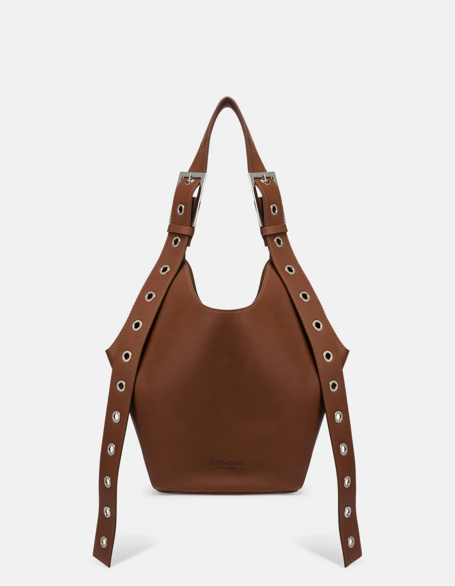 Small hobo con manico singolo regolabile, doppia fibbia logata ed occhielli, logo marchiato a caldo e clutch interna removibile logata a caldo con chiusura a zip.