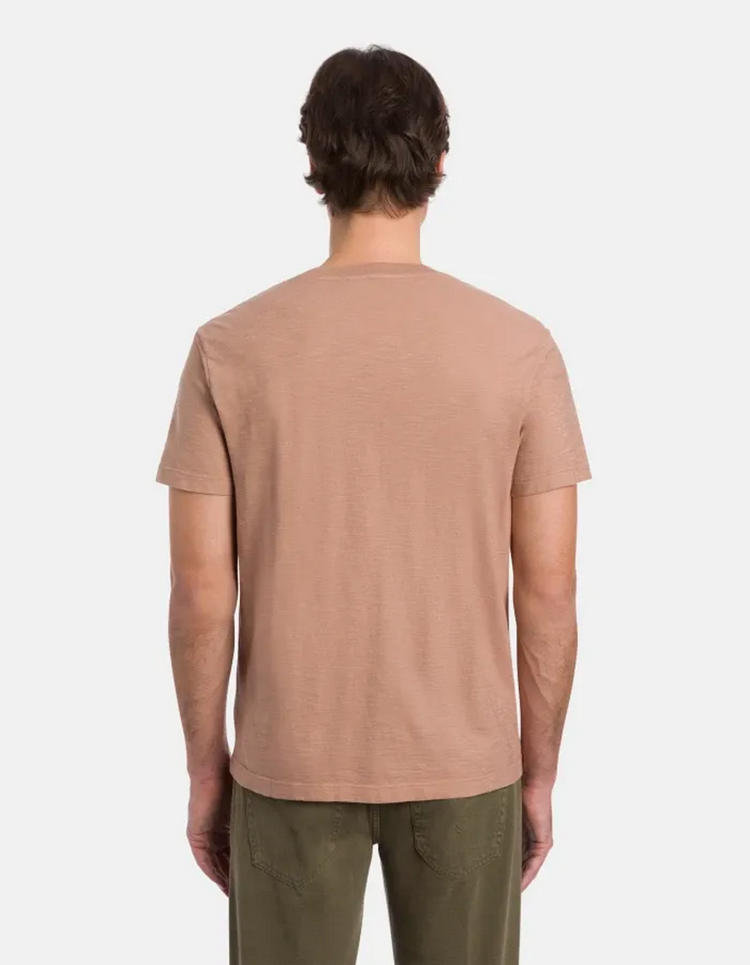 T-shirt girocollo regular a maniche corte con collo in costina e logo ricamato in etichetta sul petto, lato sinistro.