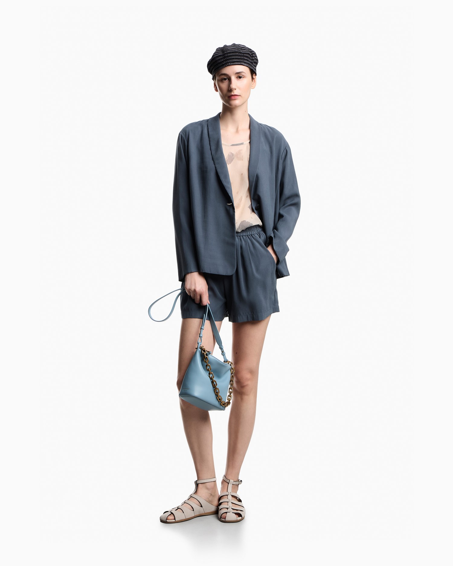 Blazer in twill lavato con chiusura con bottoni, tasche frontali applicate e polsini con bottoni.