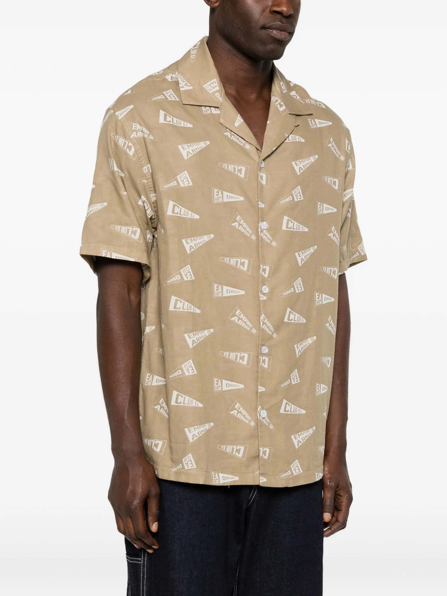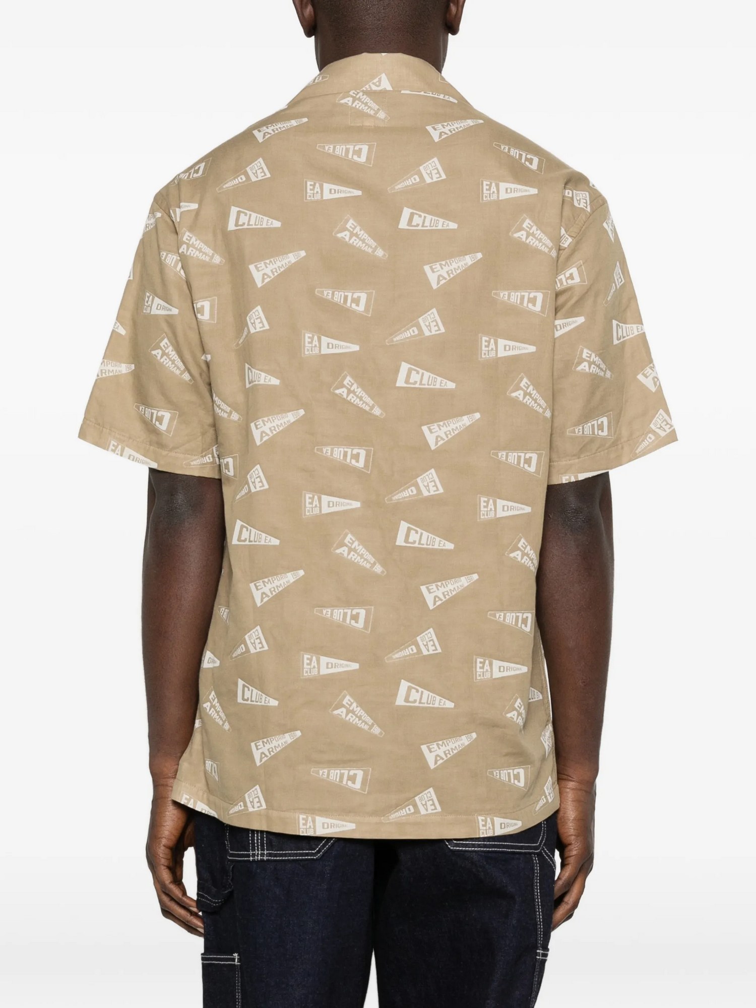 Camicia a maniche corte con motivo logo, colletto a punta, chiusura frontale con abbottonatura e tasca applicata.