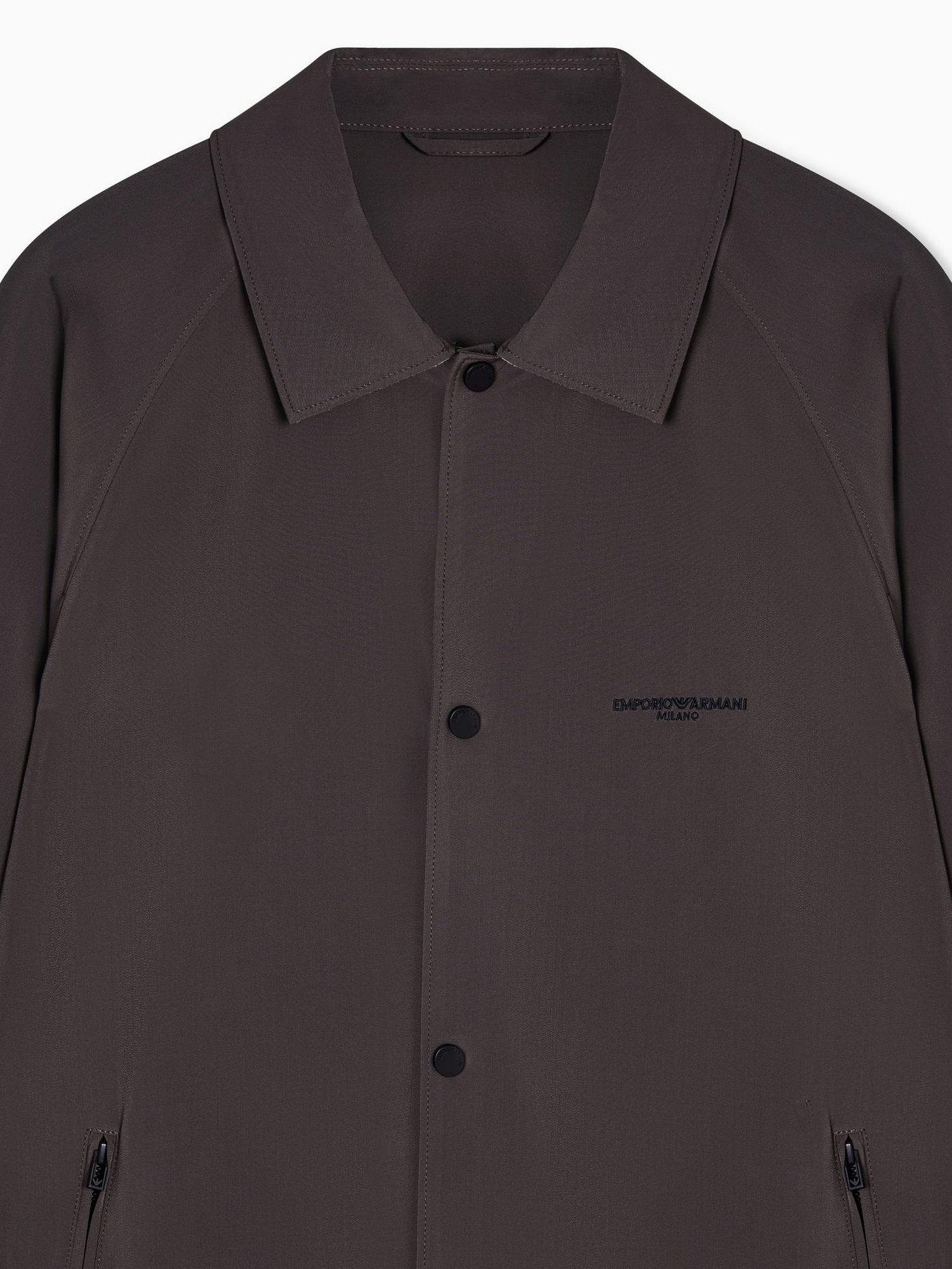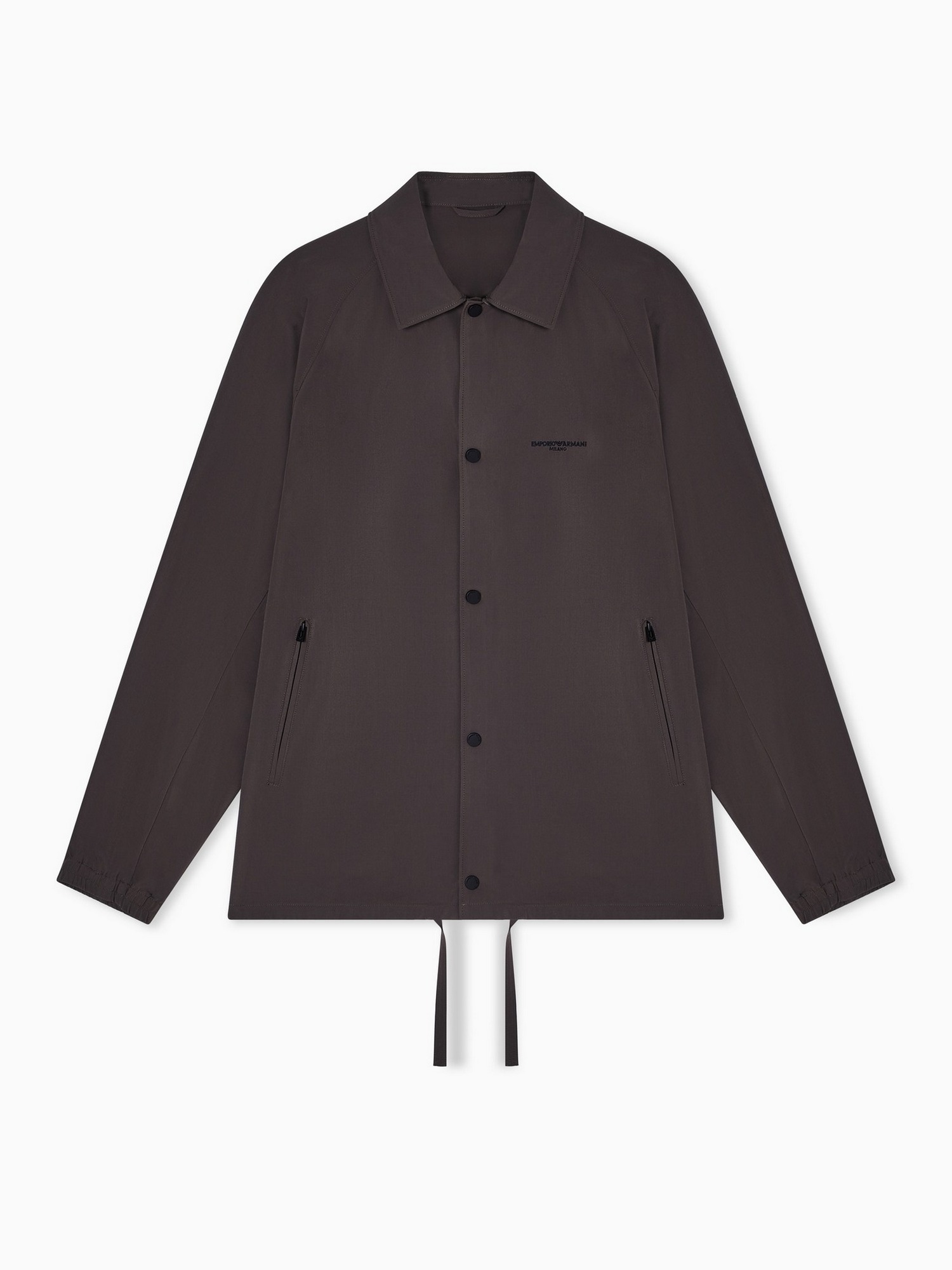 Giacca con collo classico, chiusura con automatici, ricamo logo sul petto, polsini elastici, tasche laterali con zip e fondo con coulisse.