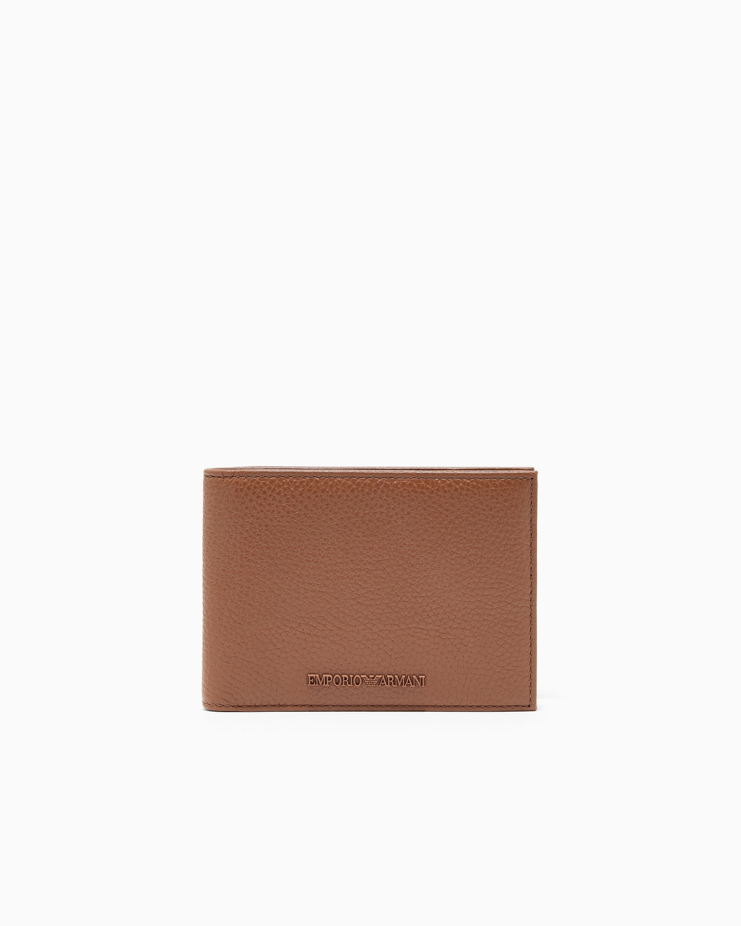 Portafoglio in pelle con rifinitura bottalata, logo gommato e tasche portacarte.