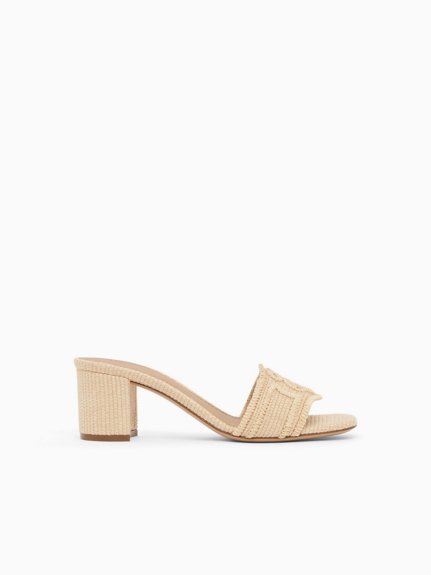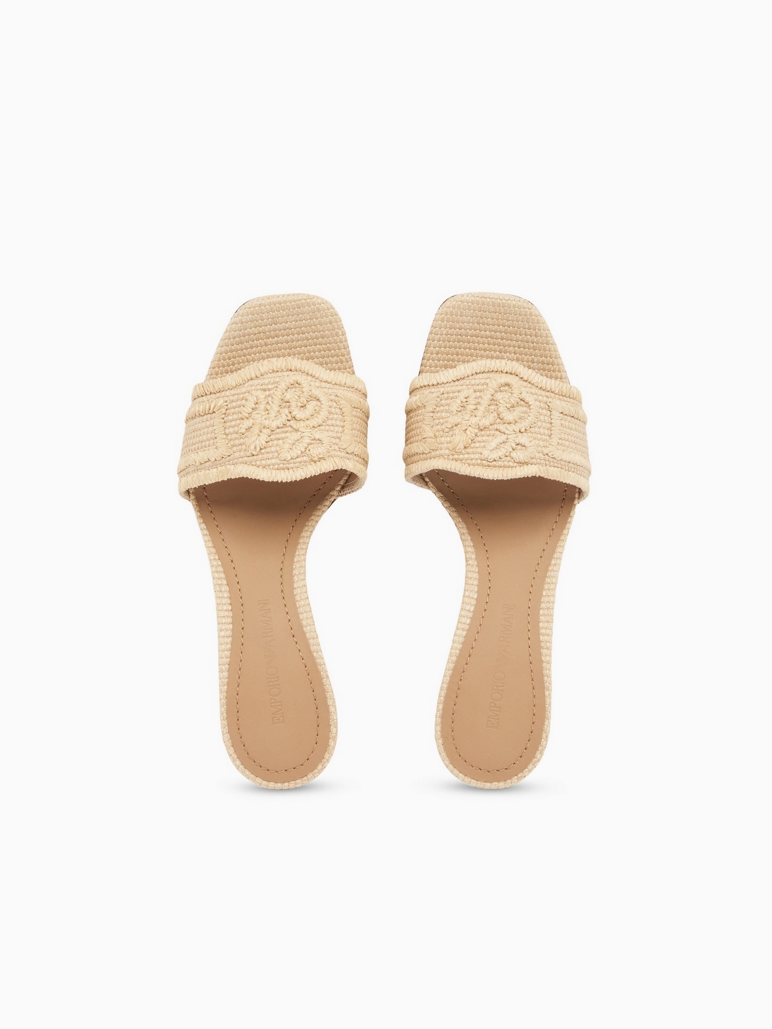 Sandali in rafia intrecciata con tacco 5,5 cm e logo a rilievo.