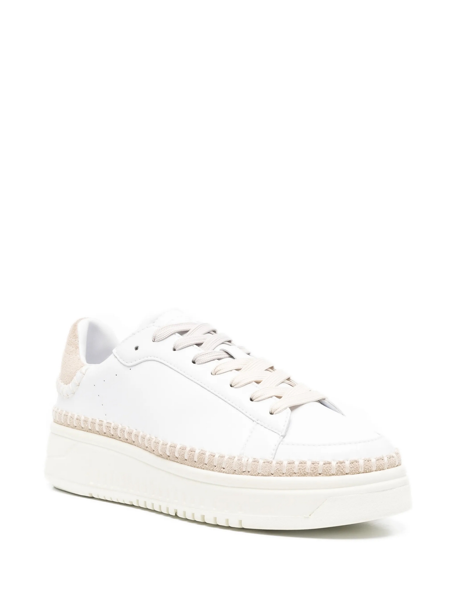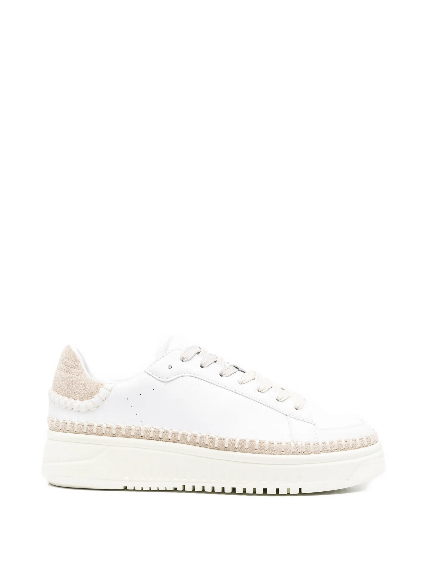 Sneakers in pelle con plateau, punta tonda, chiusura con lacci e rifiniture intrecciate.