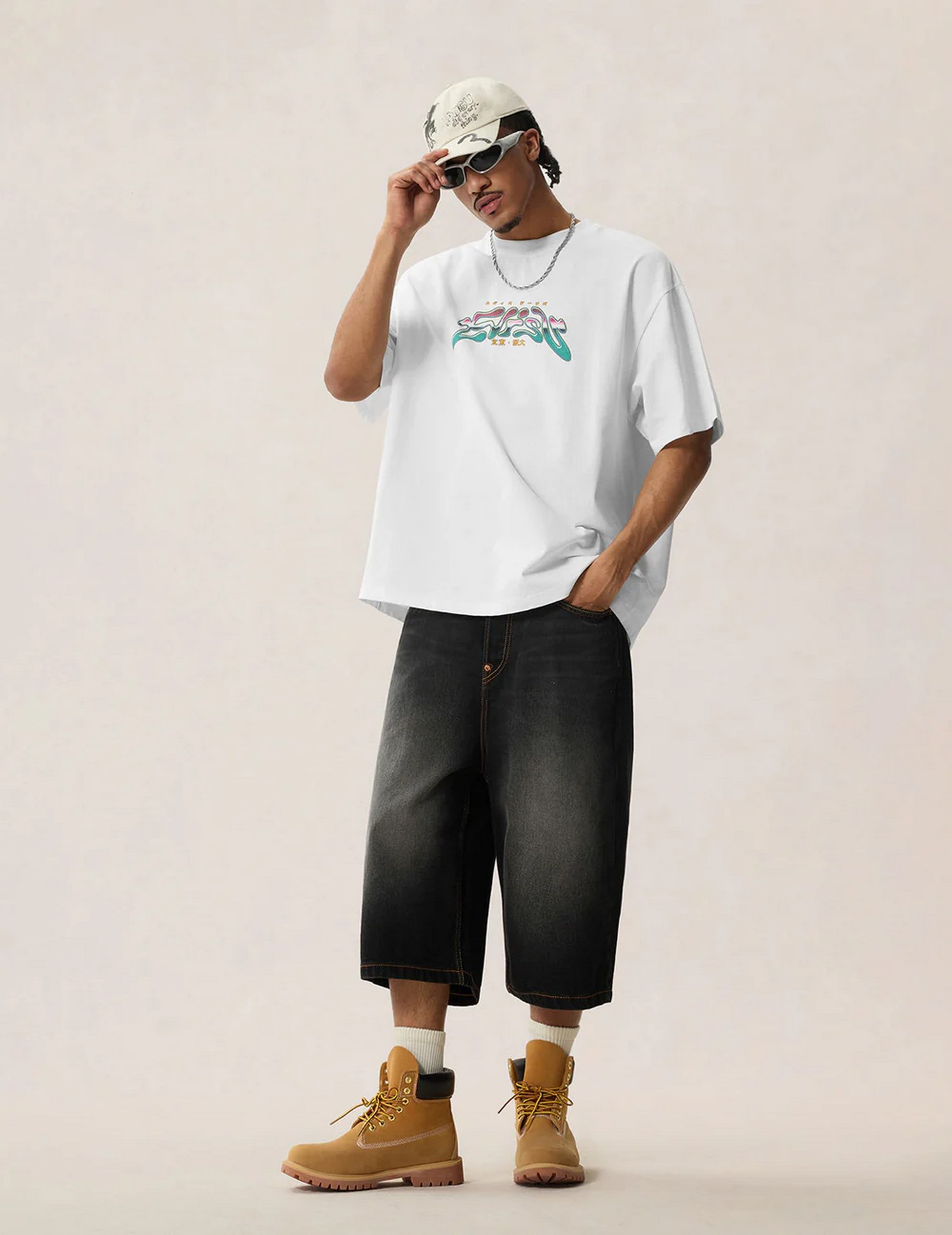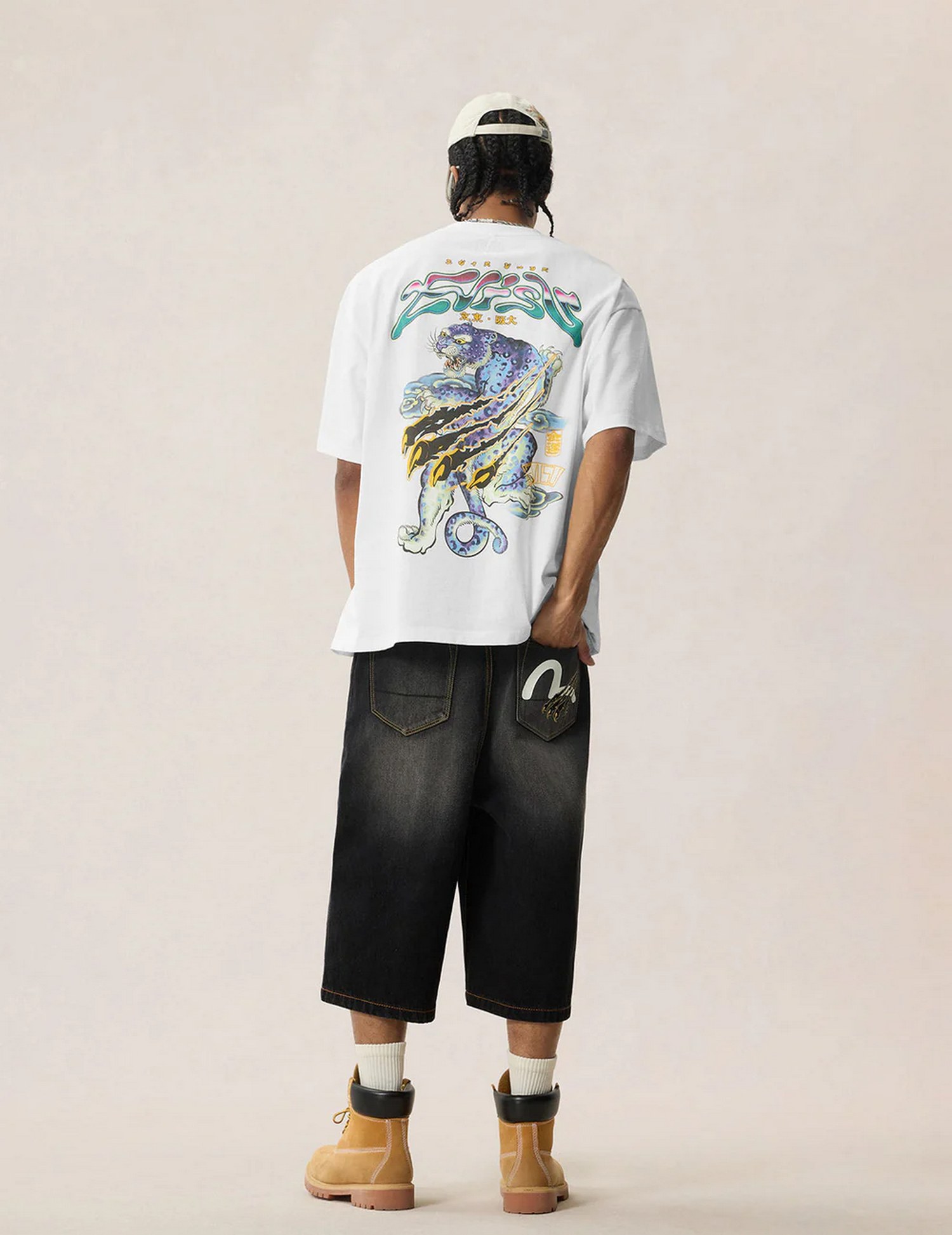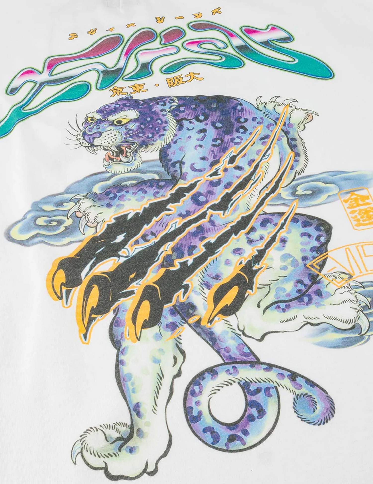 T-shirt loose fit in cotone con stampe al neon con leopardo e segni di artigli.