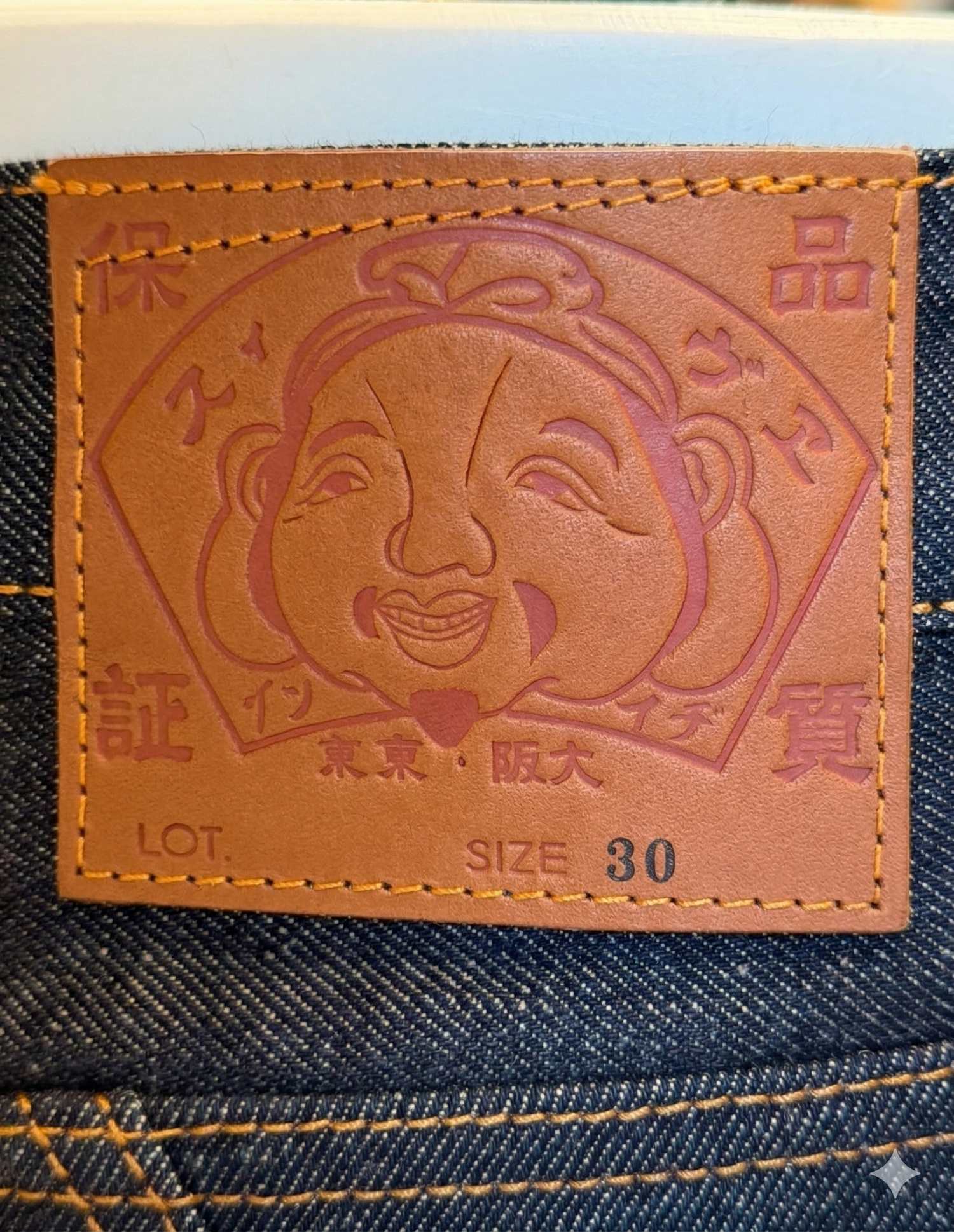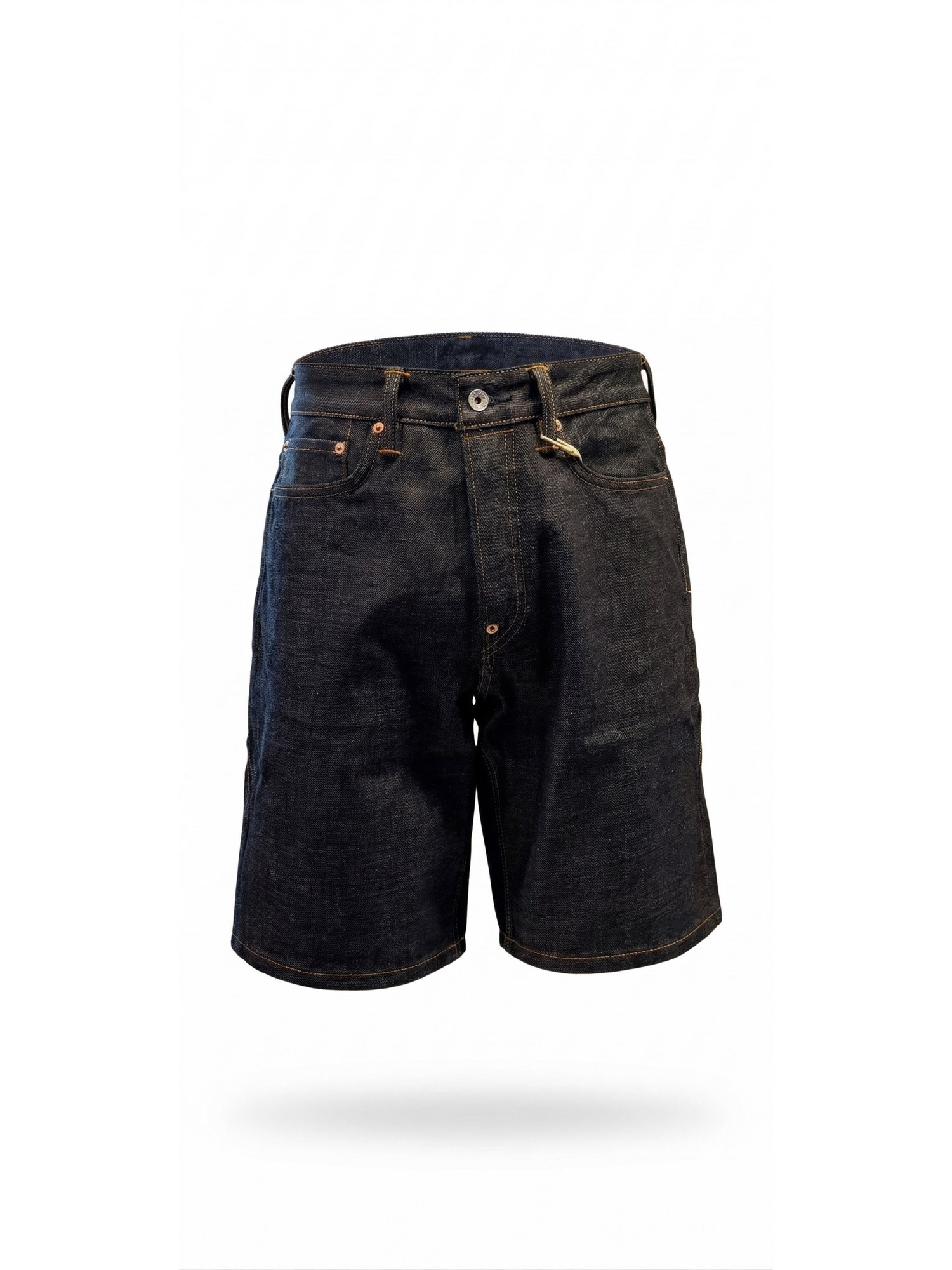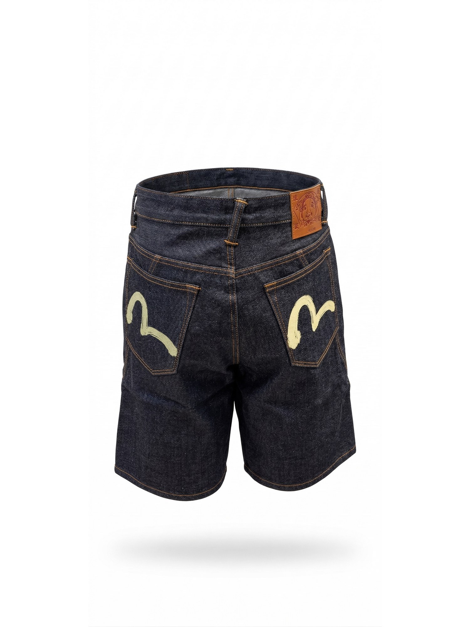 Shorts in denim con patch in pelle logata, cuciture a contrasto e seagull sulle tasche posteriori.