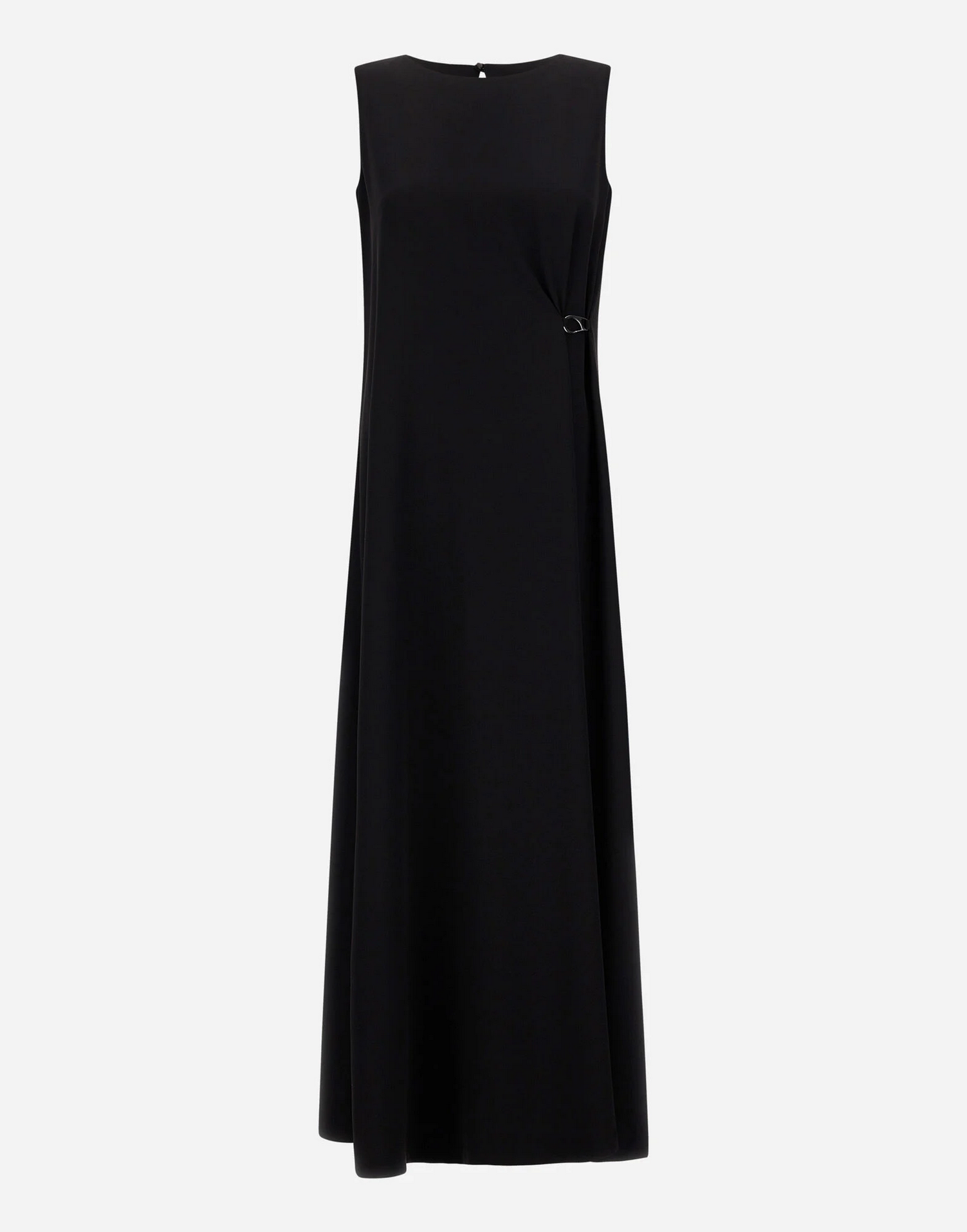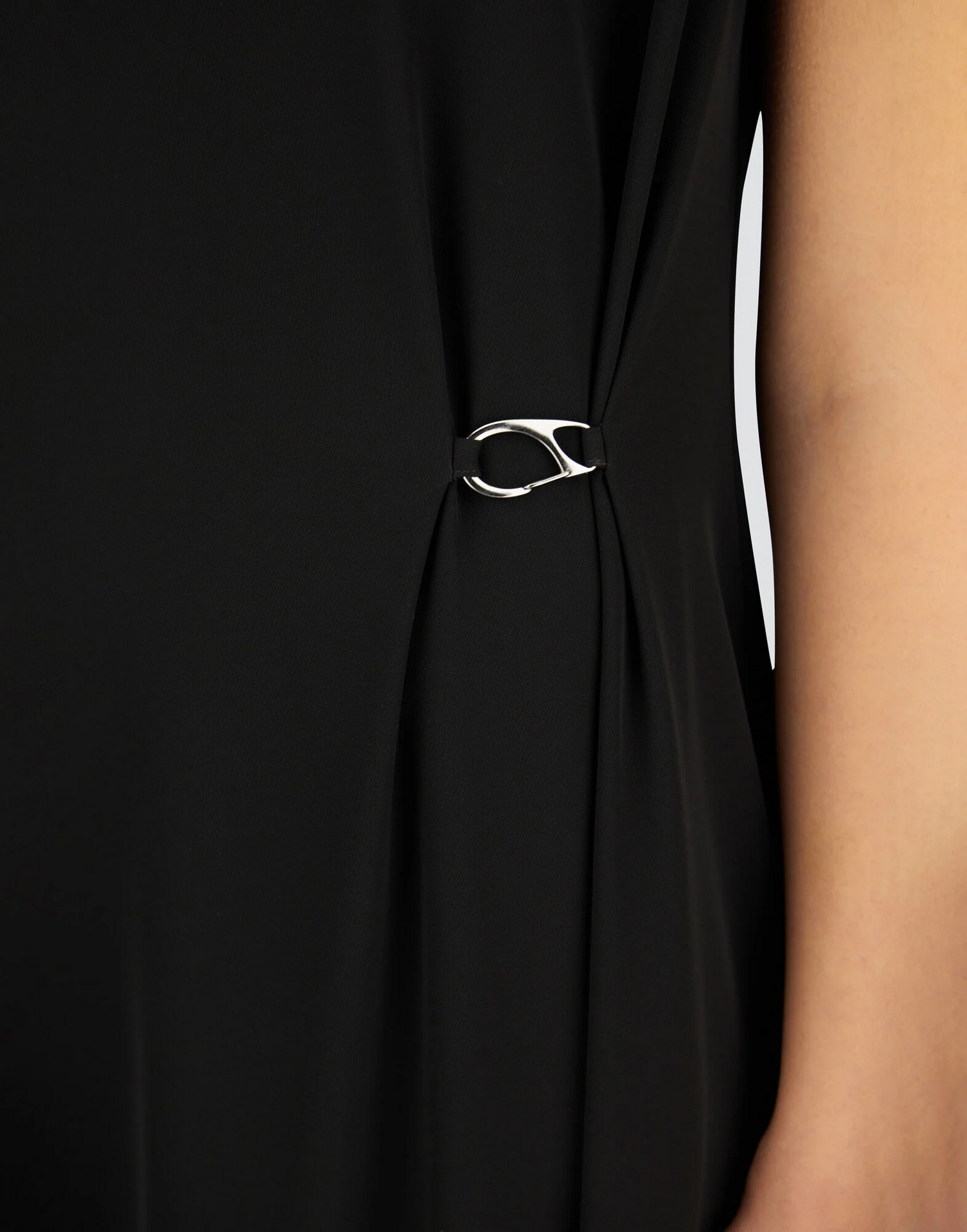Abito in tessuto fluido con armatura diagonale con bottone sul retro e dettaglio in metallo.