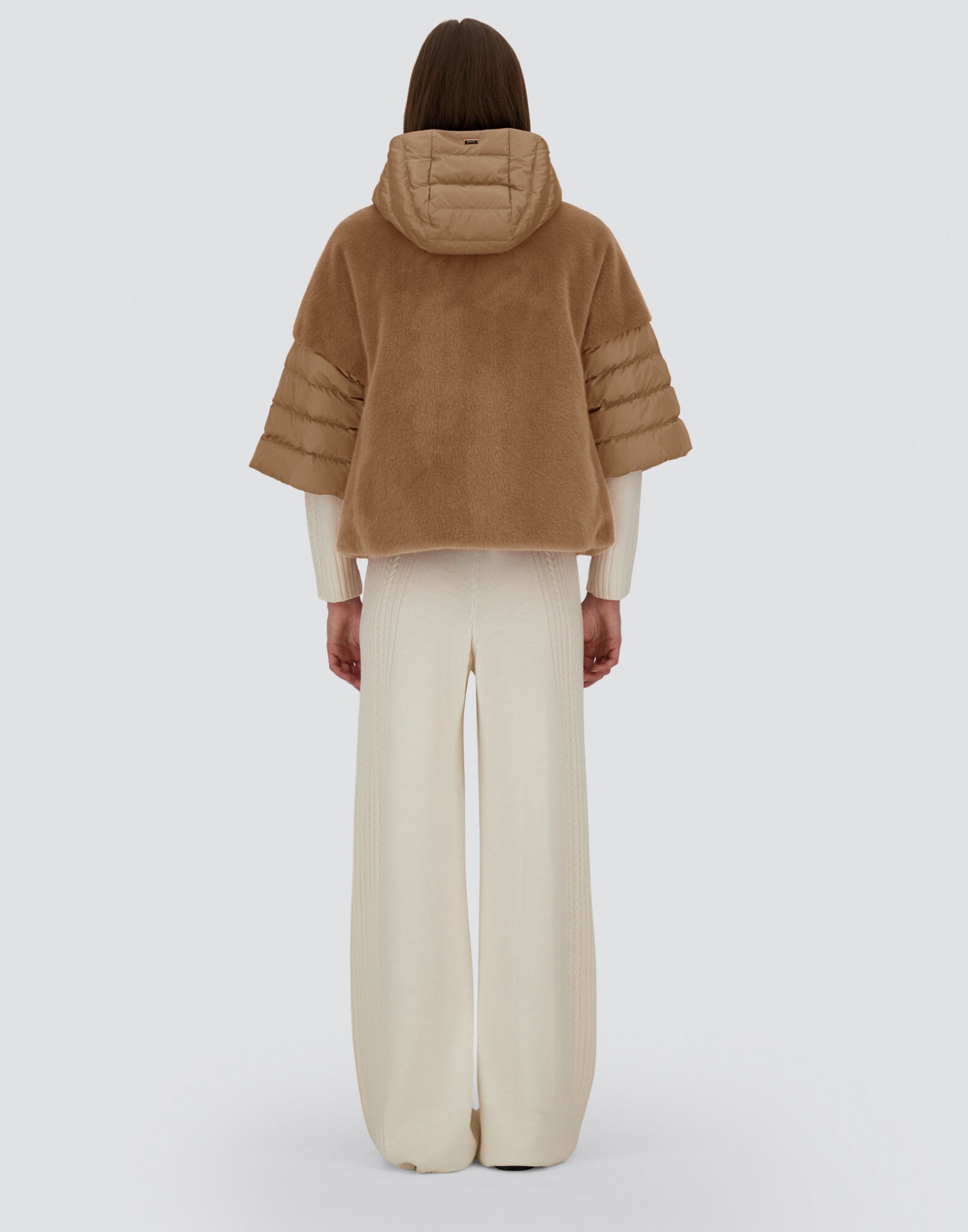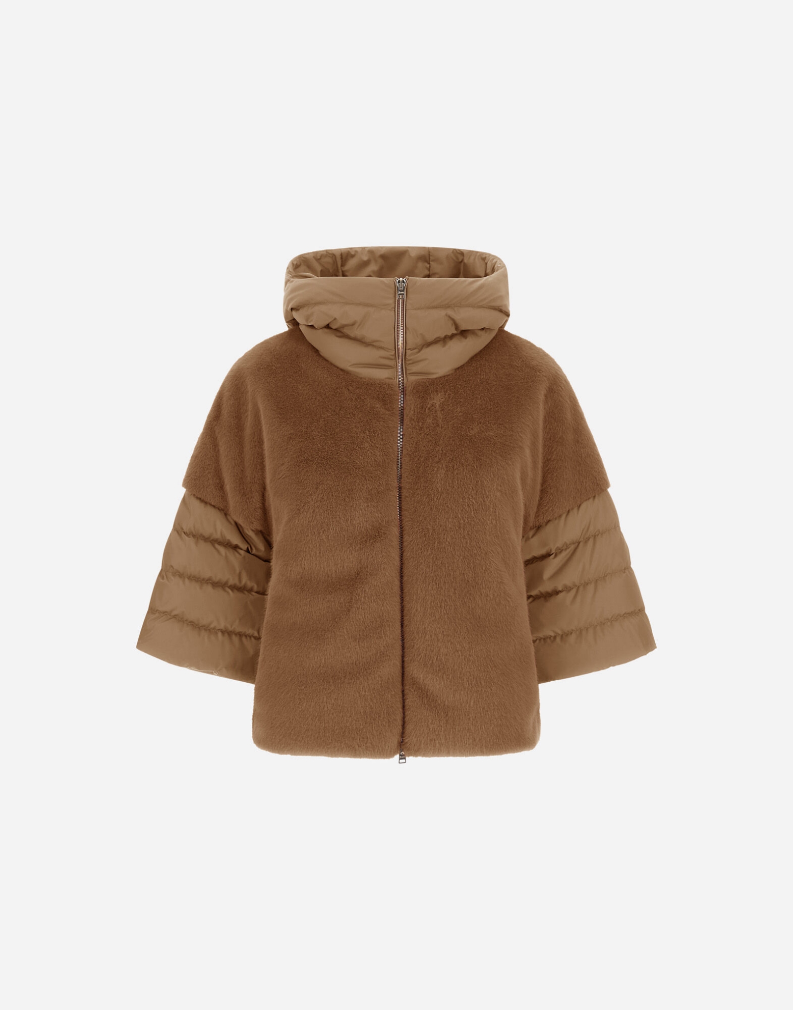 Cappotto trapuntato con collo alto, chiusura con zip, chiusura a coulisse ed imbottitura orizzontale.