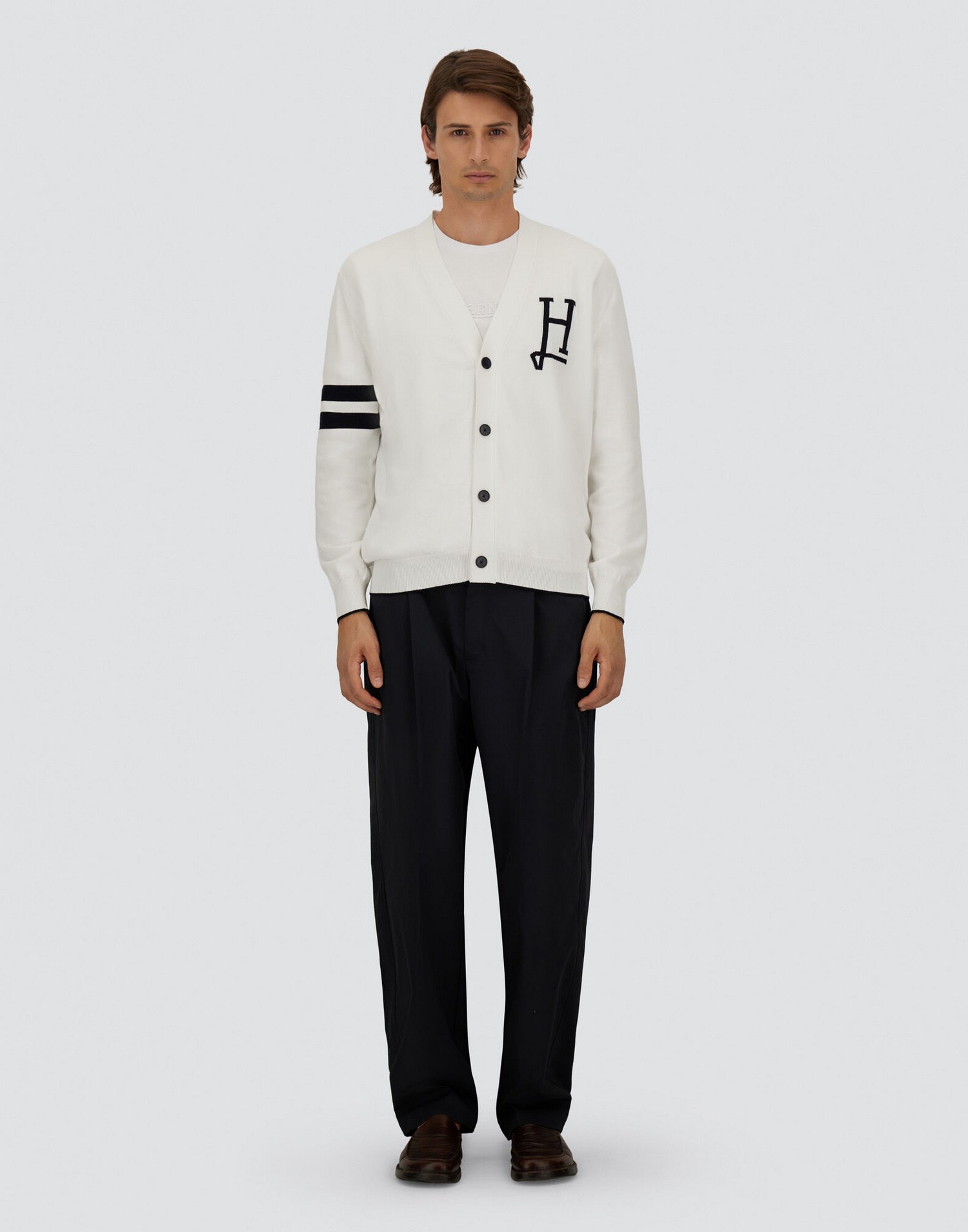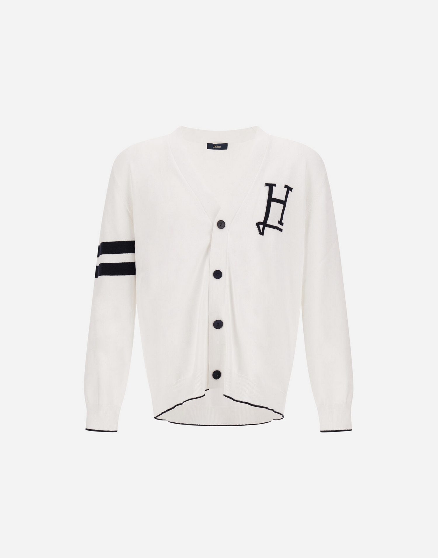 Cardigan in cotone con lavorazione punto rasato e logo jacquard.