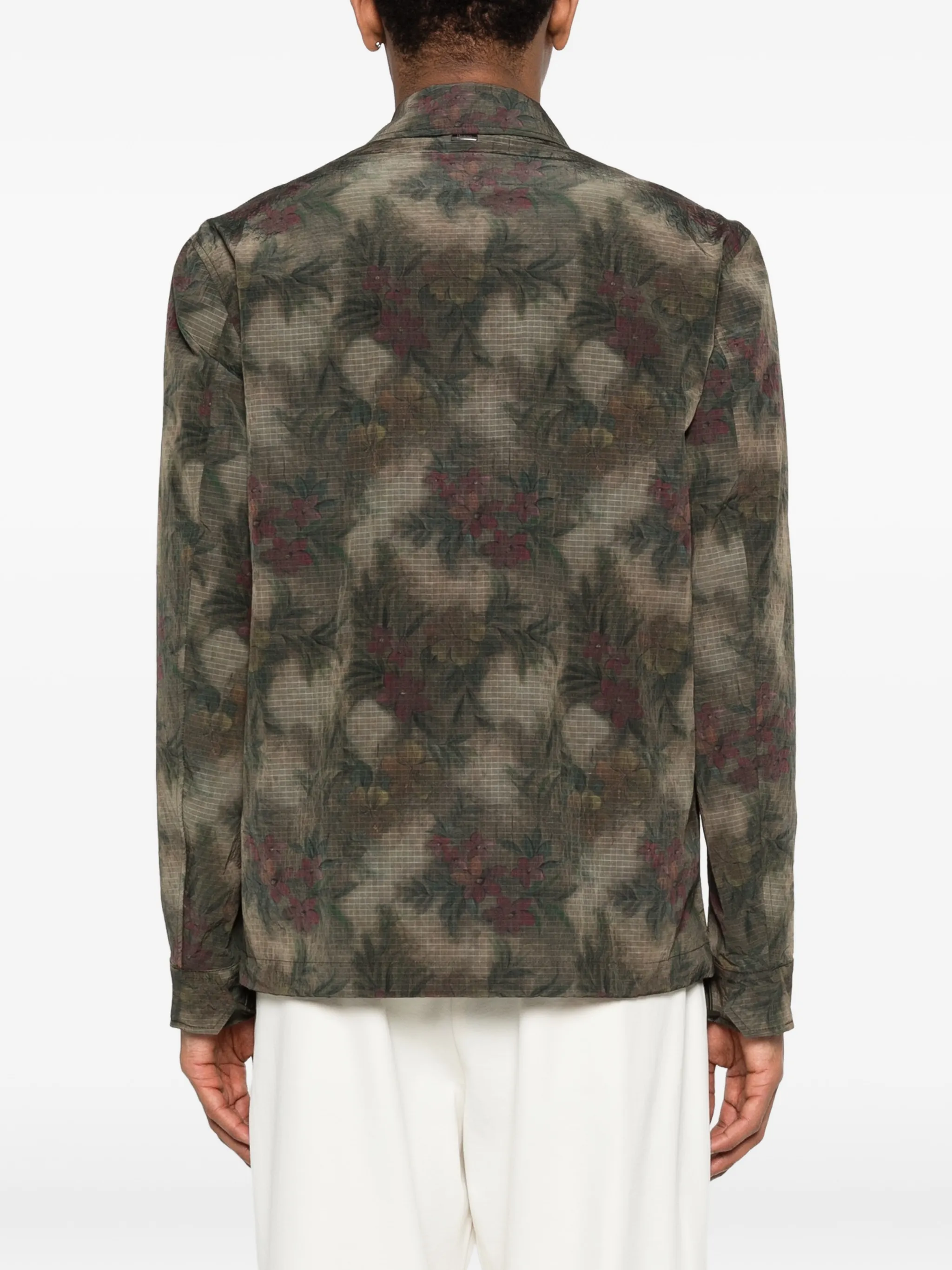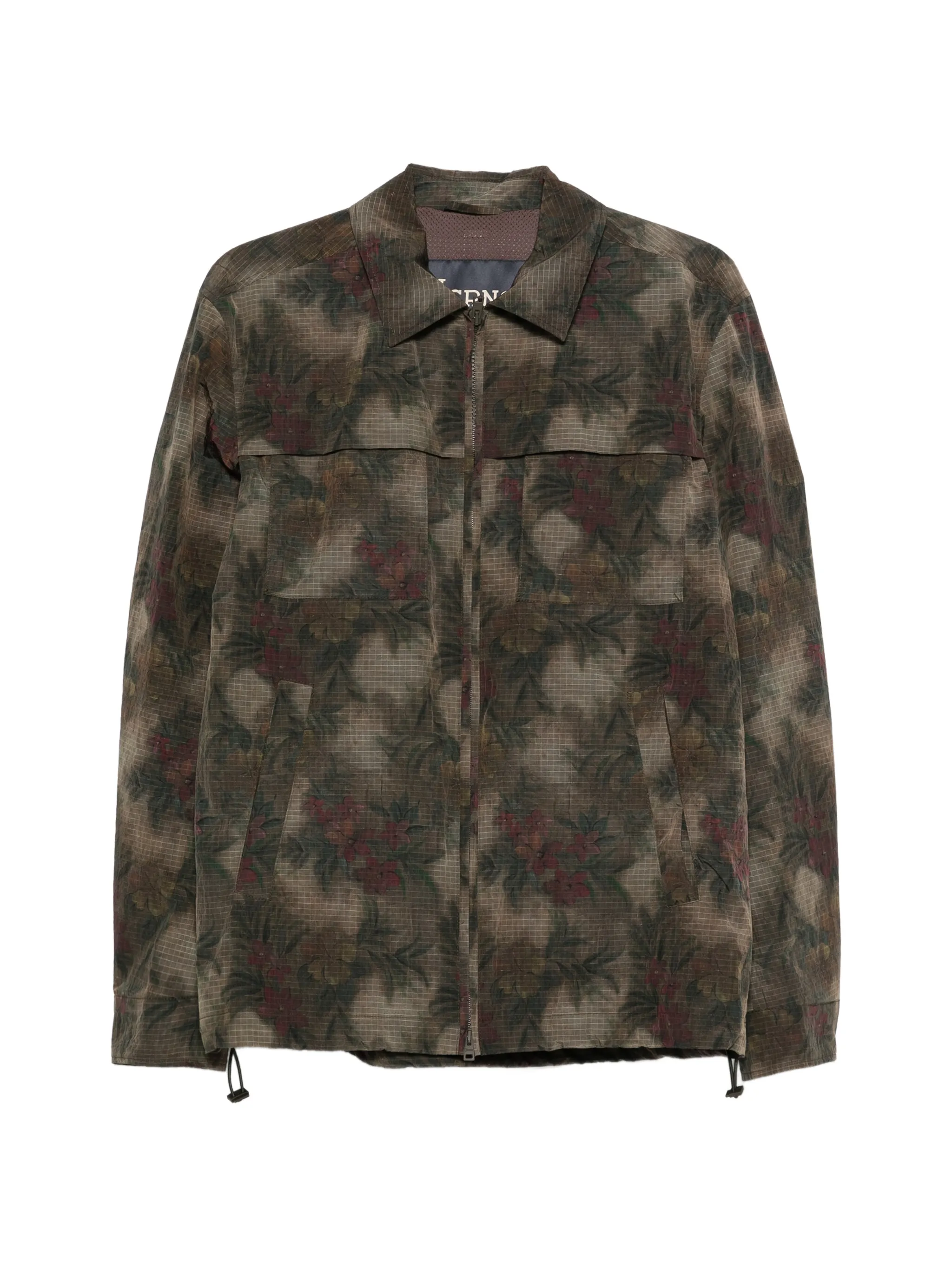 Giacca in ripstop con con stampa floreale, chiusura a zip, colletto a maniche lunghe e orlo con coulisse.