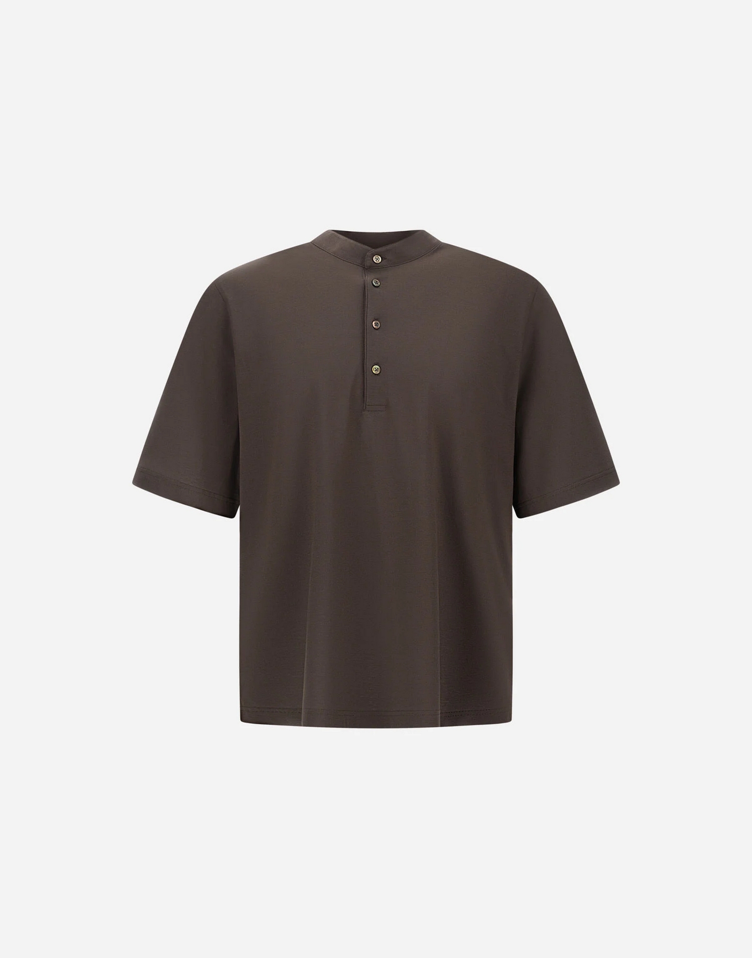T-shirt in jersey voile crêpe leggero con colletto serafino con bottoni e logo Herno in metallo sul retro.