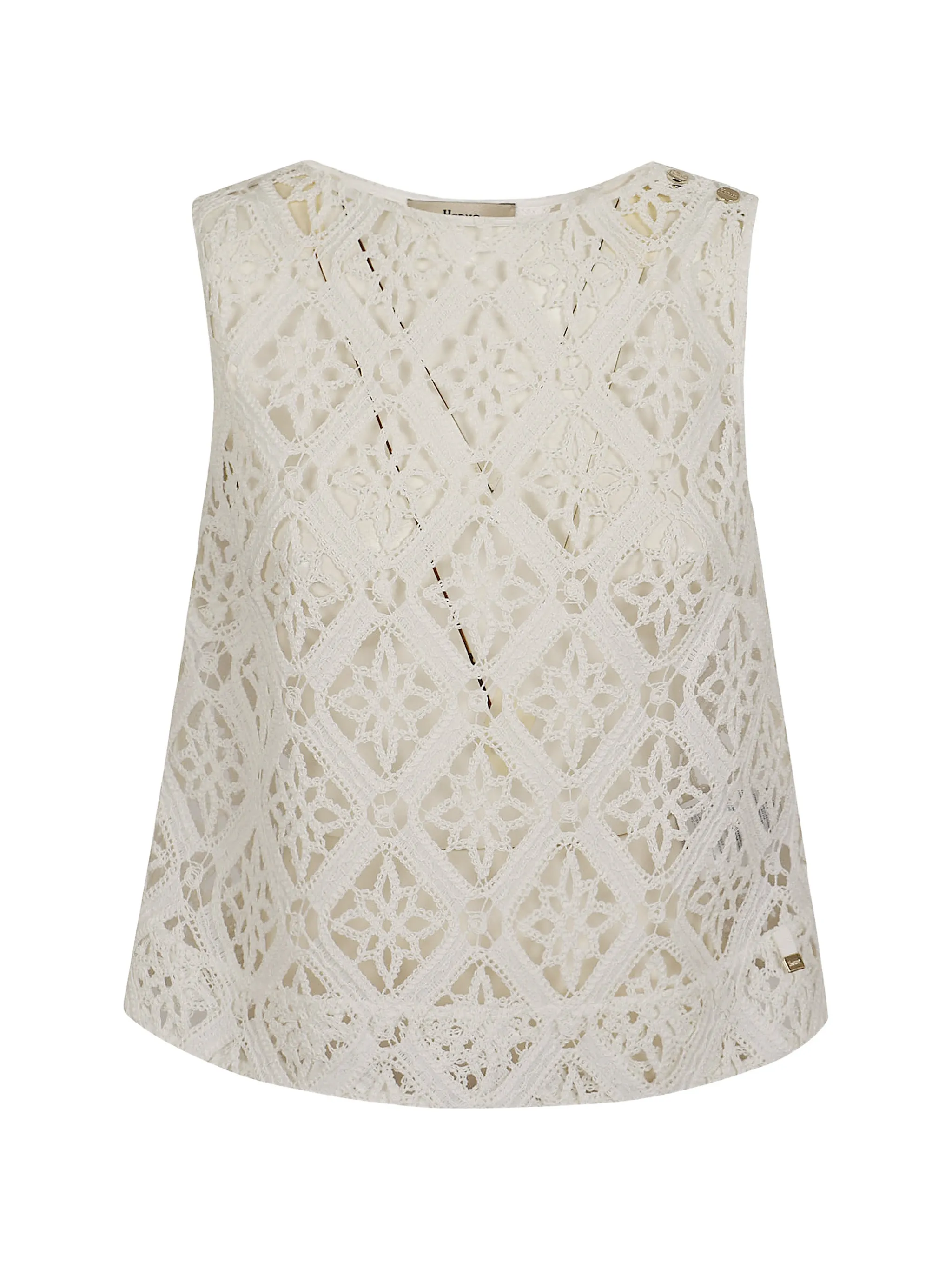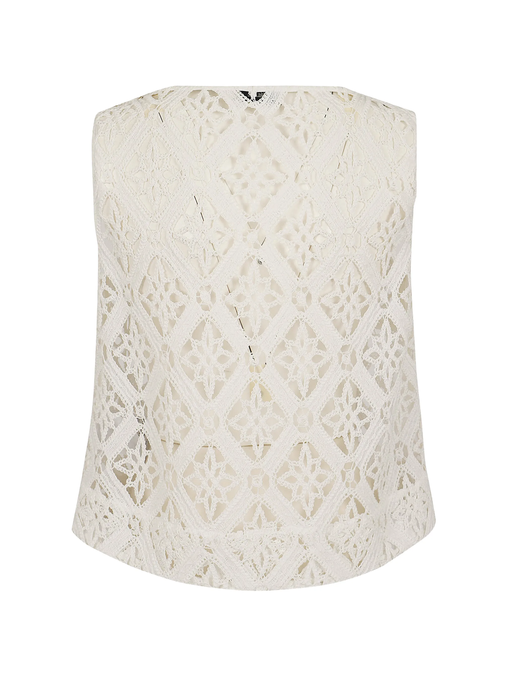 Top girocollo senza maniche con lavorazione crochet.