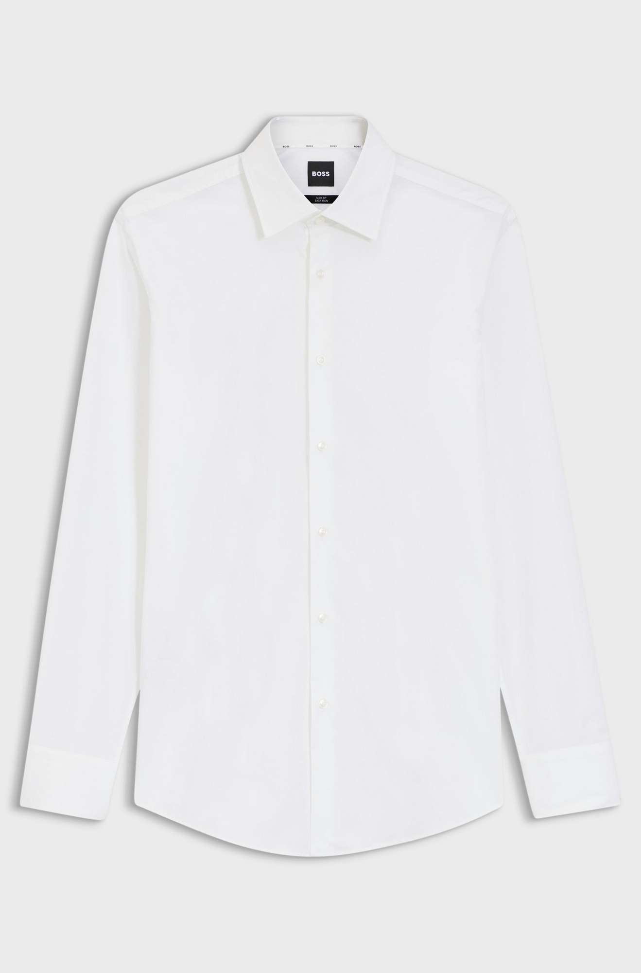 Camicia business slim fit, colletto stile Kent e polsini rotondi.