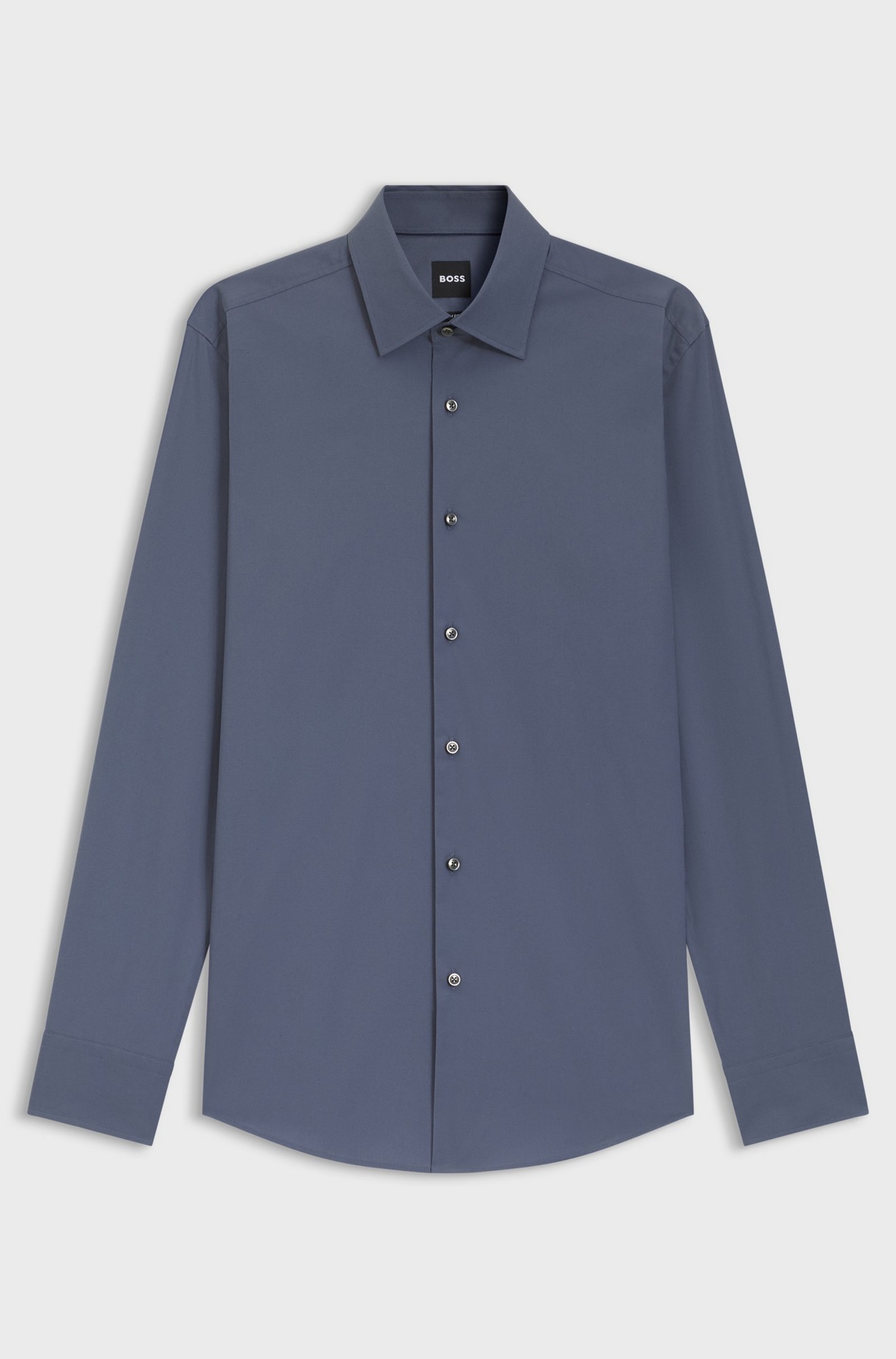 Camicia business slim fit, colletto stile Kent e polsini rotondi.