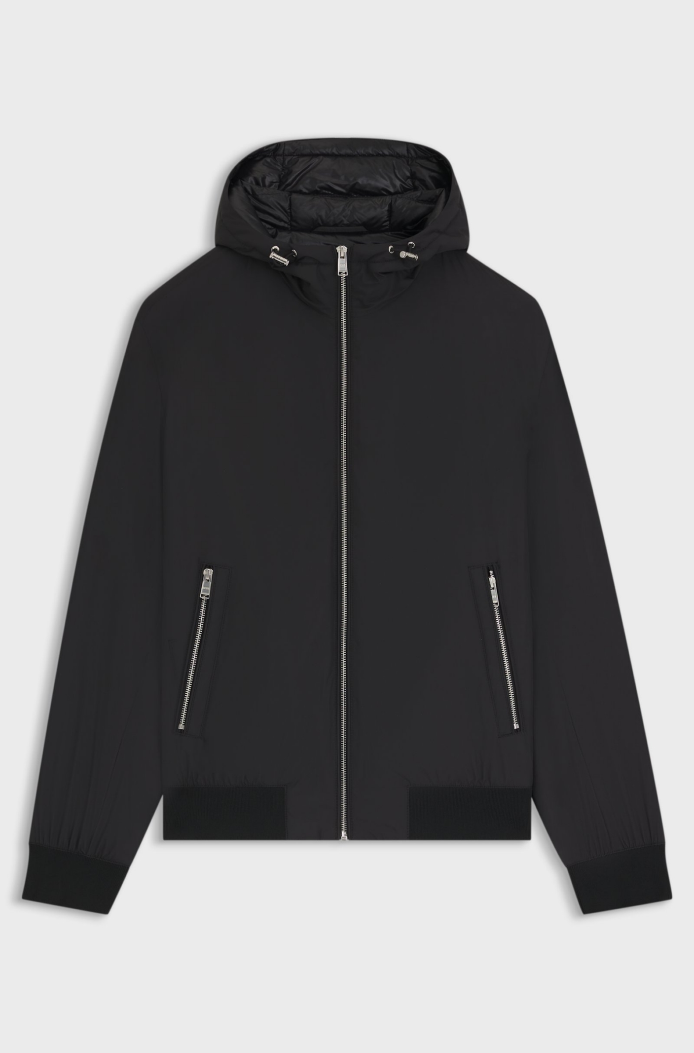 Giubbotto idrorepellente con dettagli in metallo e motivi con logo.