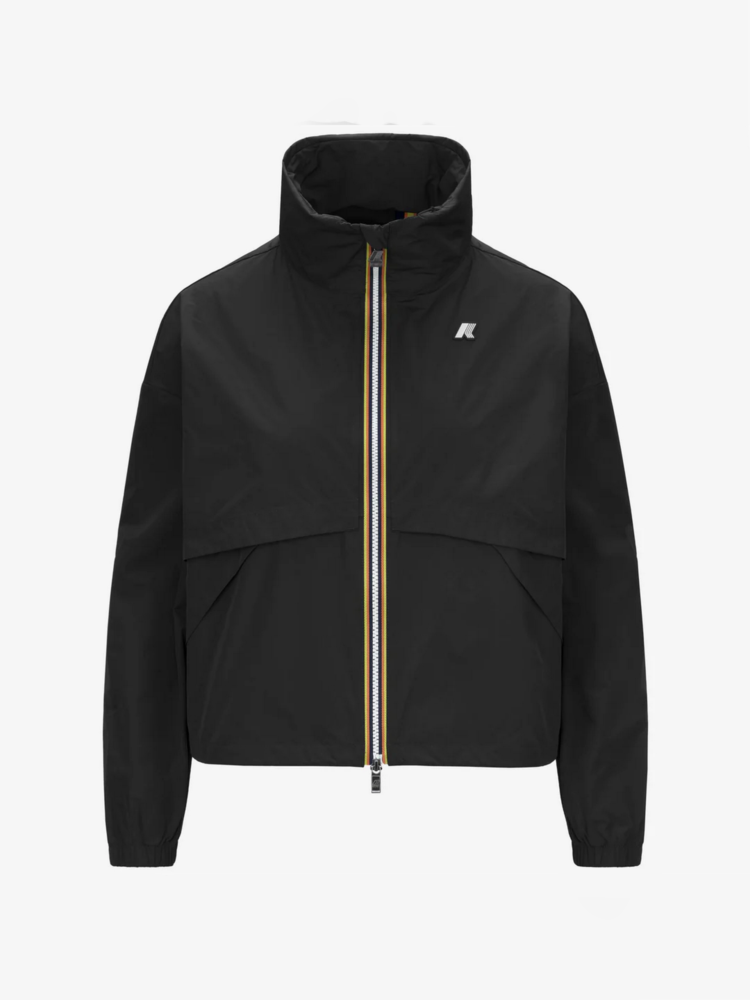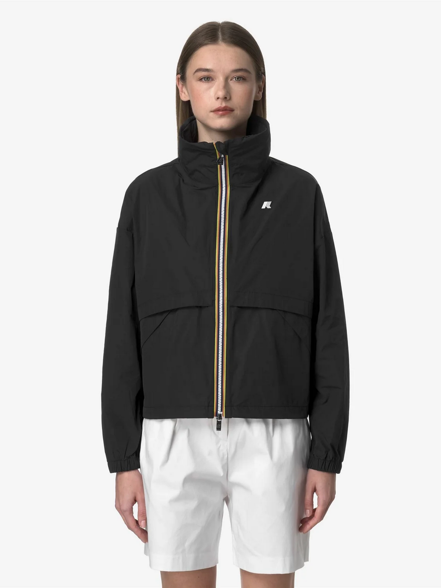 Giacca corta in poliestere idrorepellente con fibra Solotex® a memoria di forma, chiusura con zip, 2 tasche con patta, vita regolabile con coulisse e logo in silicone.