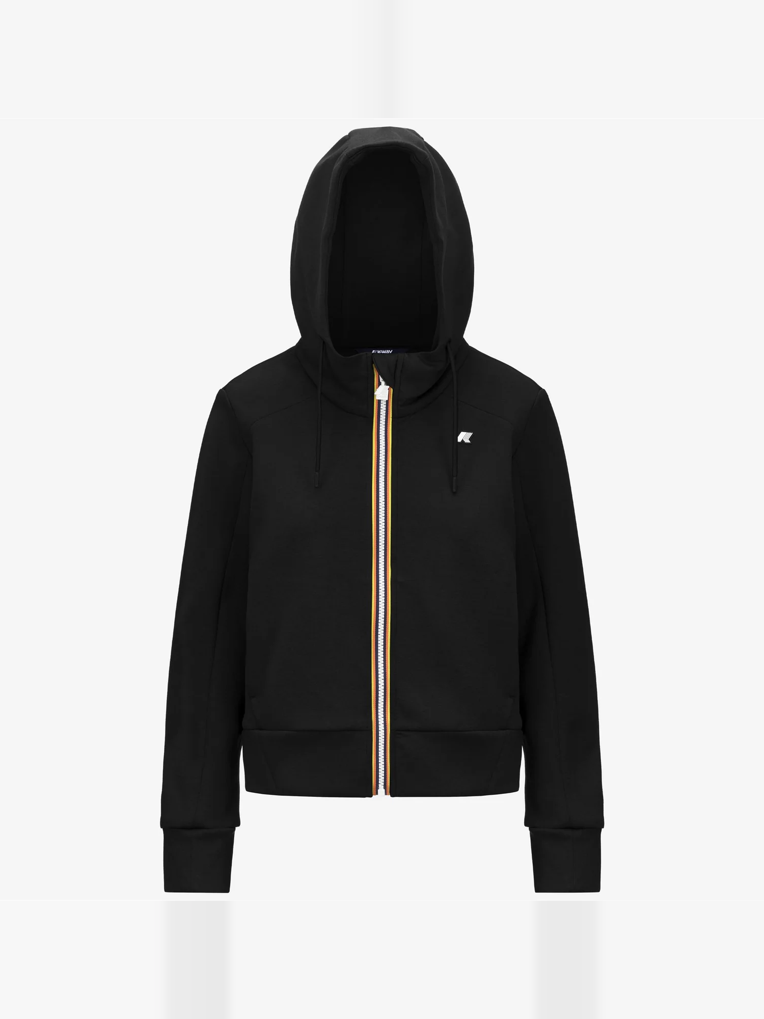 Felpa cropped in interlock opaco elasticizzato con tasche diagonali, polsi e bordo vita a costine e tessuto riportato, a pertura con zip e logo in silicone bianco.