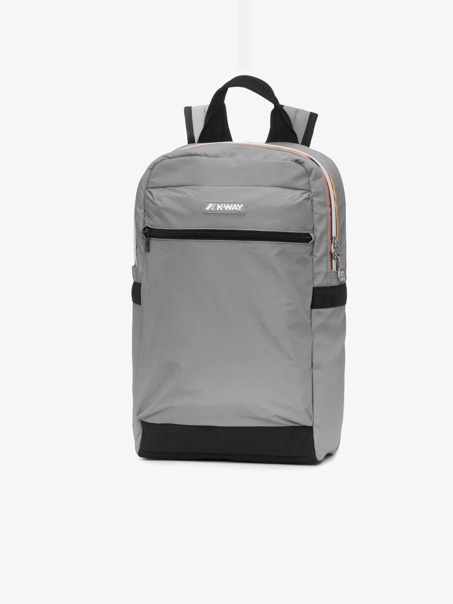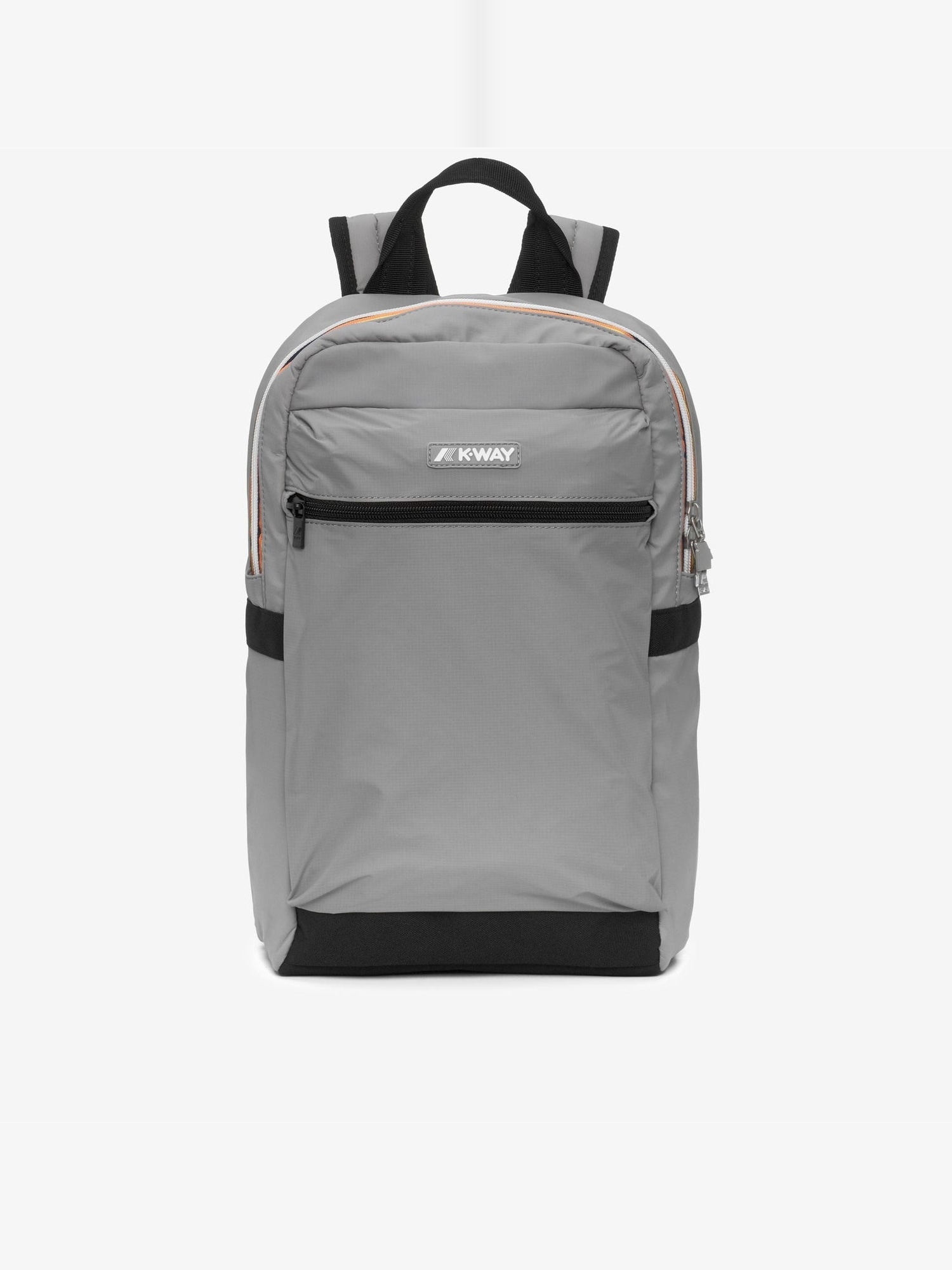 Zaino in nylon ripstop idrorepellente con manico in nastro, schienale imbottito in rete, spallacci imbottiti regolabili, tasca frontale con zip, apertura principale con zip e logo in silicone.