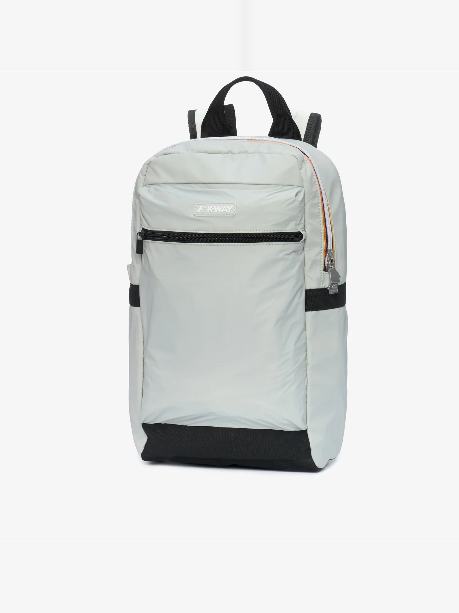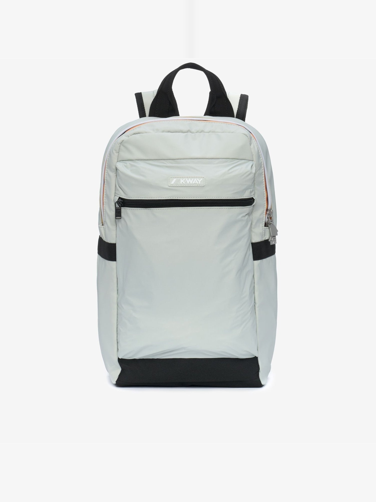 Zaino in nylon ripstop idrorepellente con manico in nastro, schienale imbottito in rete, spallacci imbottiti regolabili, tasca frontale con zip, apertura principale con zip e logo in silicone.