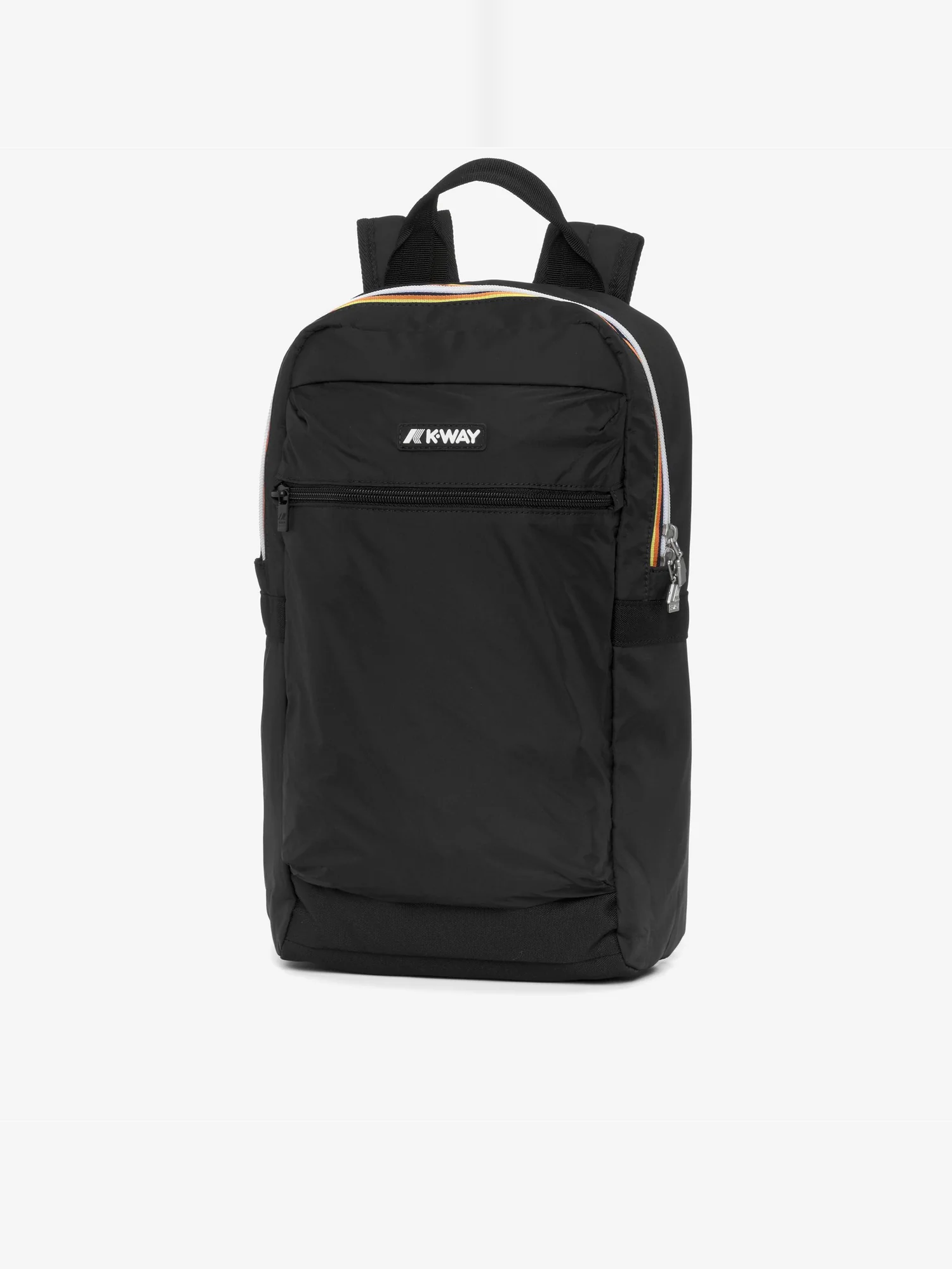 Zaino in nylon ripstop idrorepellente con manico in nastro, schienale imbottito in rete, spallacci imbottiti regolabili, tasca frontale con zip, apertura principale con zip e logo in silicone.