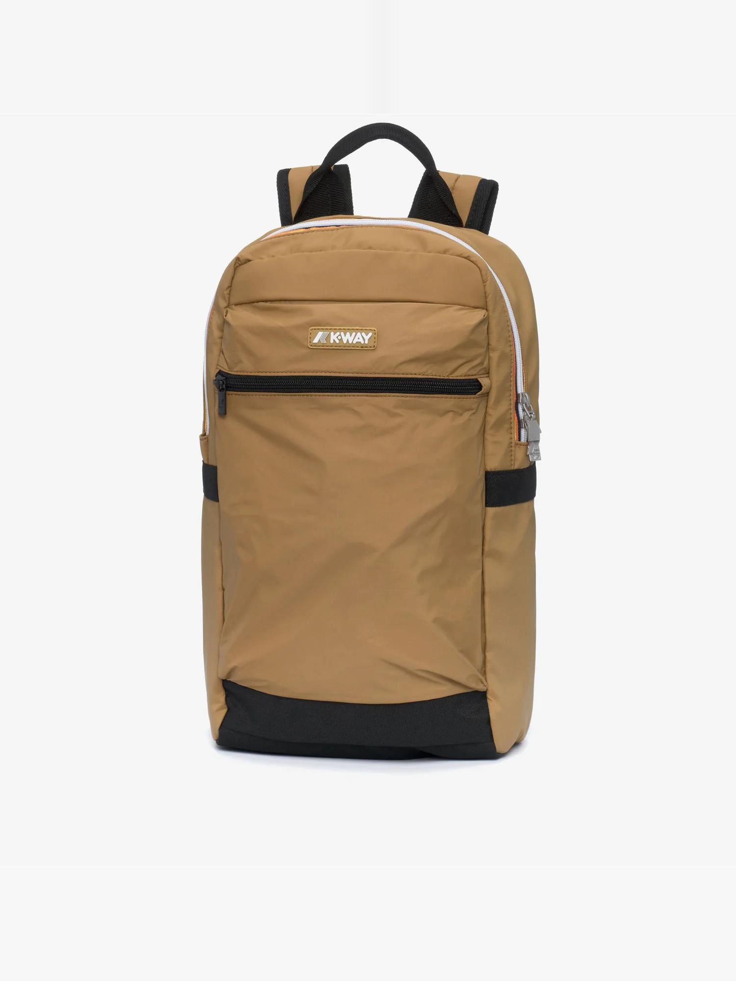 Zaino in nylon ripstop idrorepellente con manico in nastro, schienale imbottito in rete, spallacci imbottiti regolabili, tasca frontale con zip, apertura principale con zip e logo in silicone.