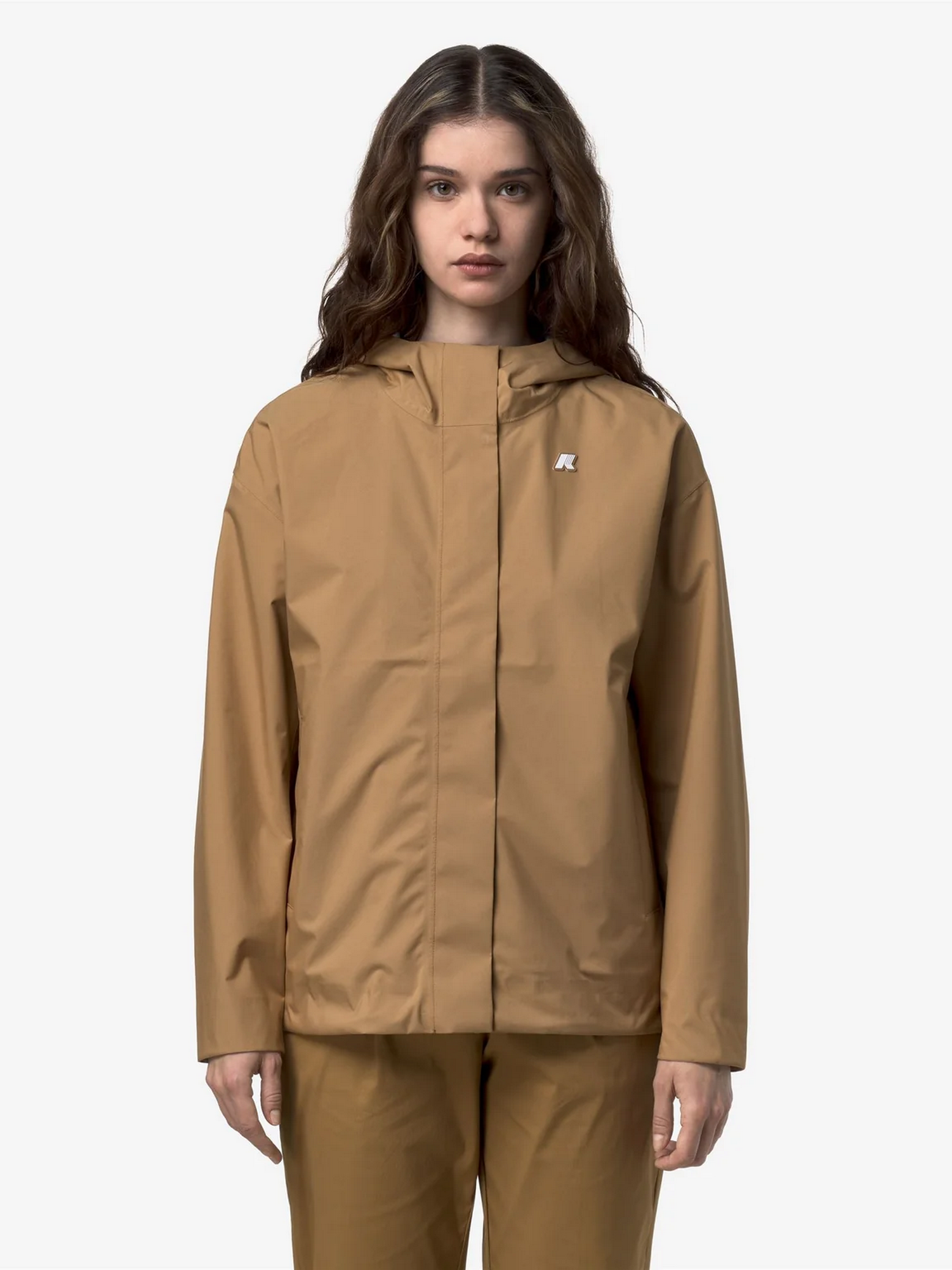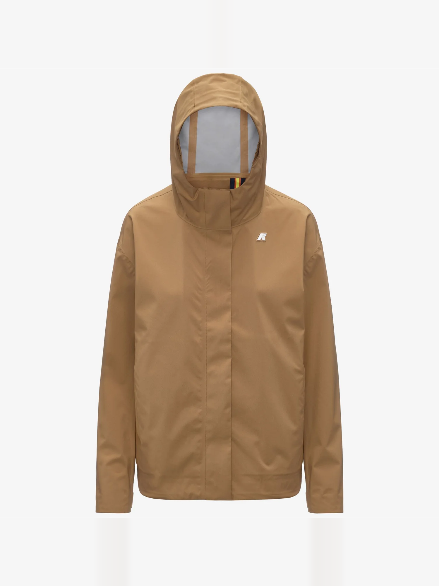 Giacca corta in tessuto a 2 strati in poliestere elasticizzato, impermeabile, antivento, traspirante con cappuccio e fondo giacca regolabili con corda elastica, polsini regolabili, chiusura zip con patta di copertura e logo in silicone.