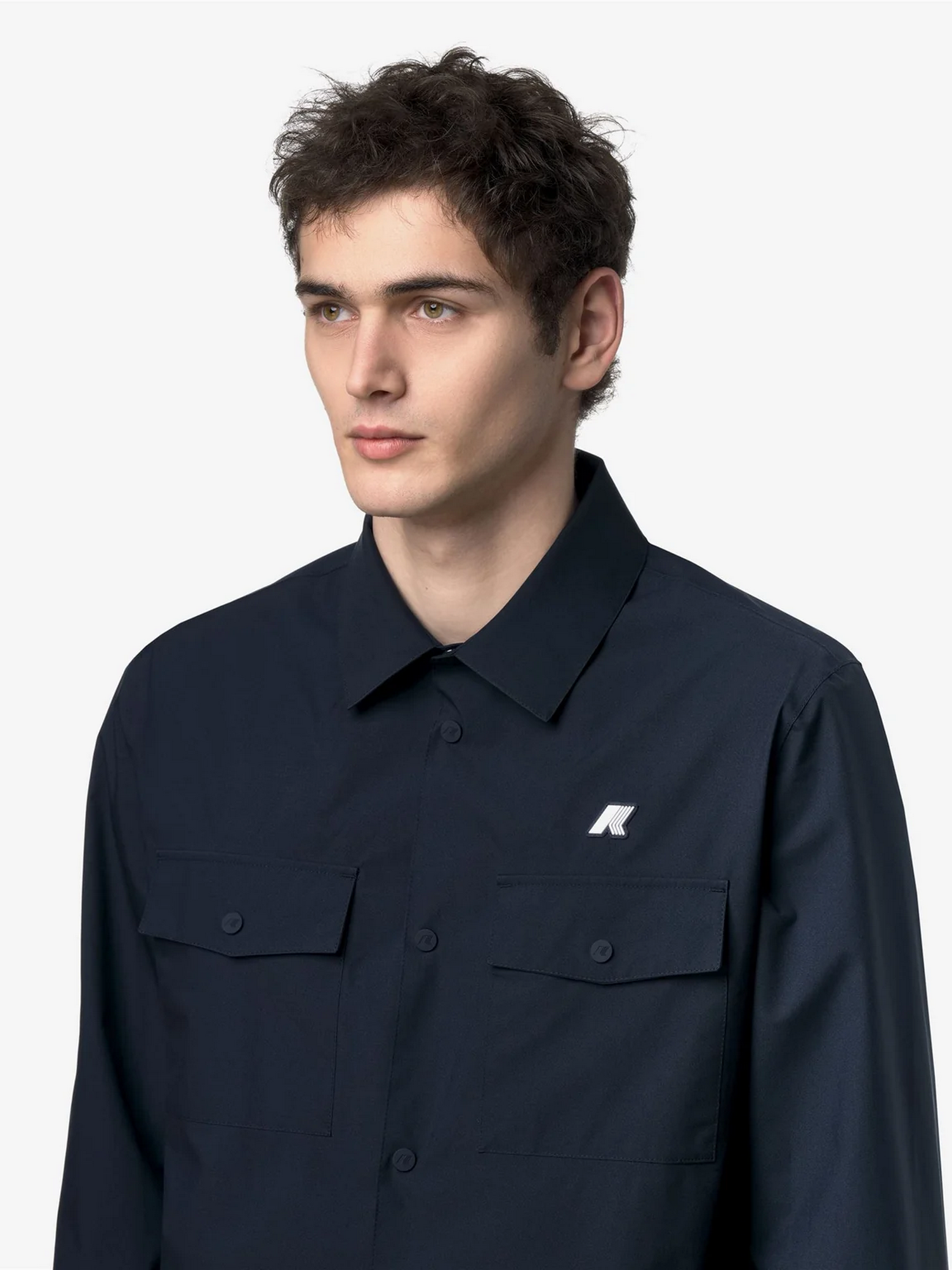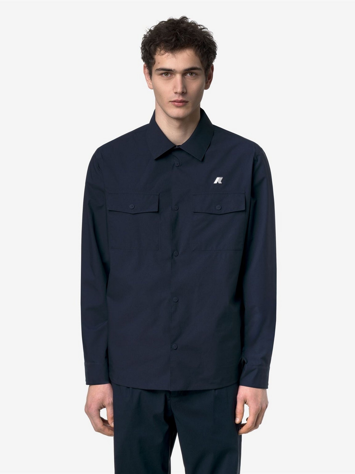 Camicia in tessuto a 2 strati in poliestere elasticizzato, impermeabile, antivento, traspirante con cuciture termonastrate, polsini regolabili, chiusura con bottoni, 2 tasche sul petto con bottone a pressione, apertura di ventilazione sul retro e logo stampato.