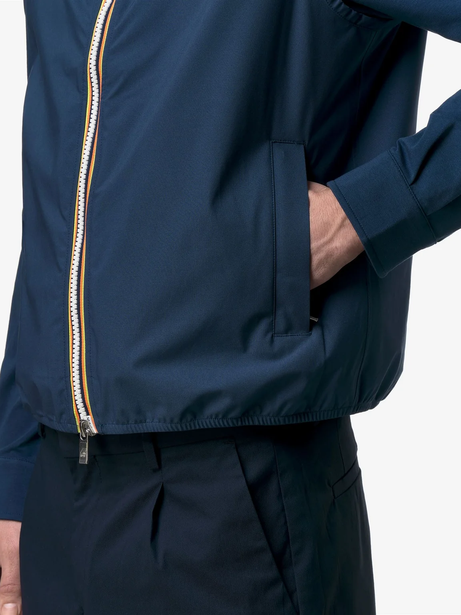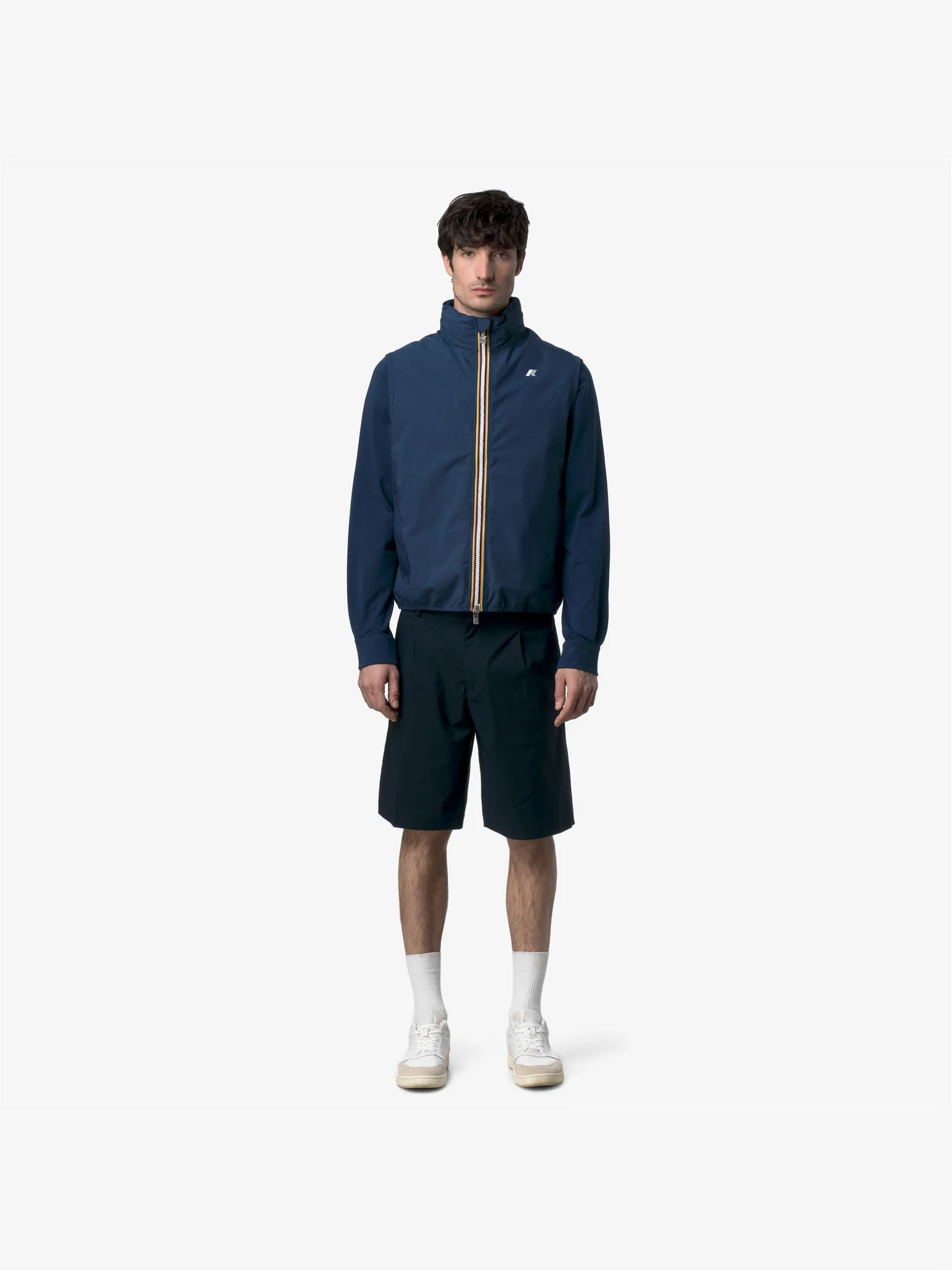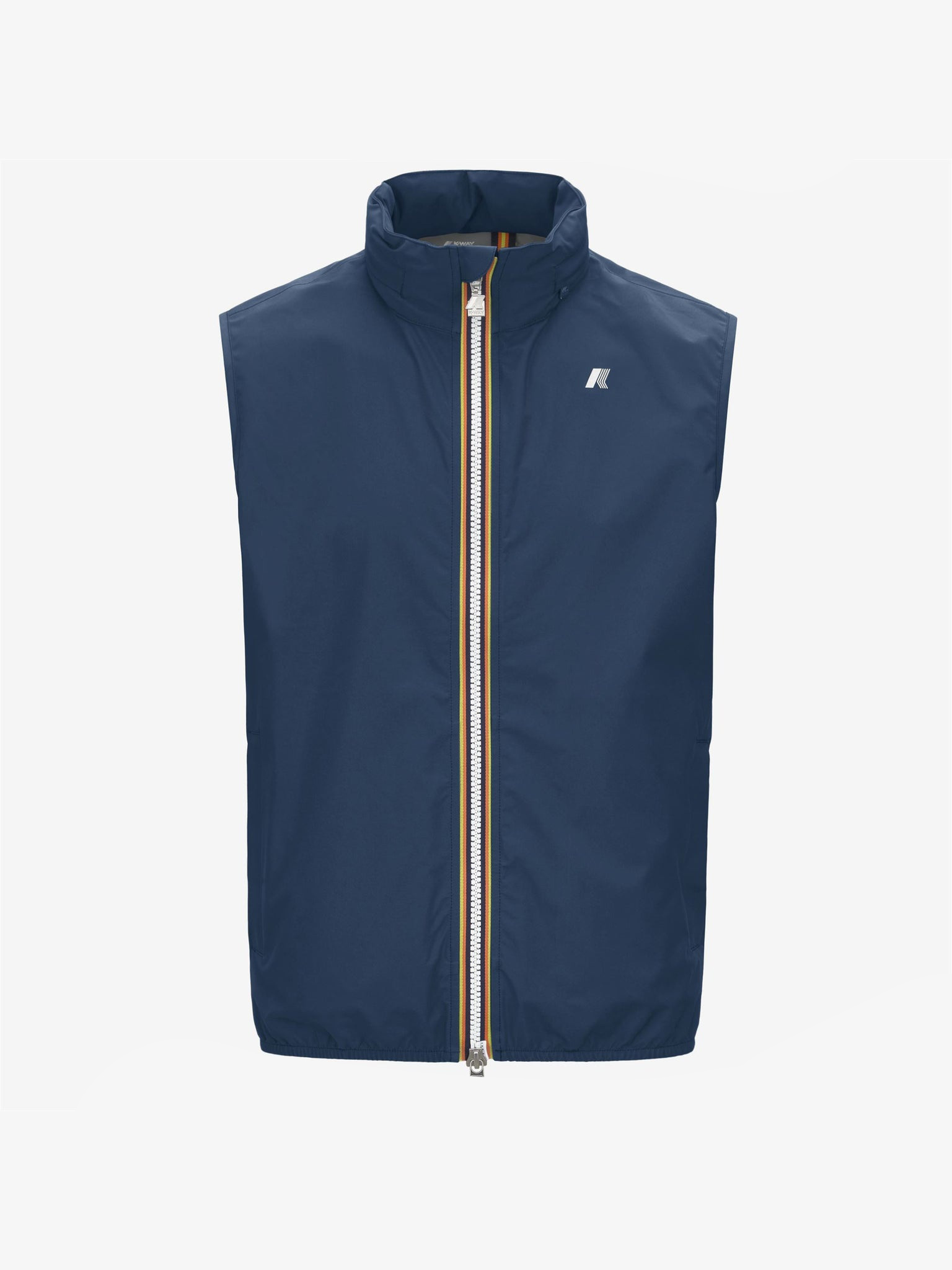 Gilet in poliestere elasticizzato, impermeabile, antivento e traspirante con membrana interna stampata con logo, cuciture termonastrate, cappuccio ripiegabile a scomparsa nel colletto, chiusura con zip, 2 tasche con zip e logo stampato.