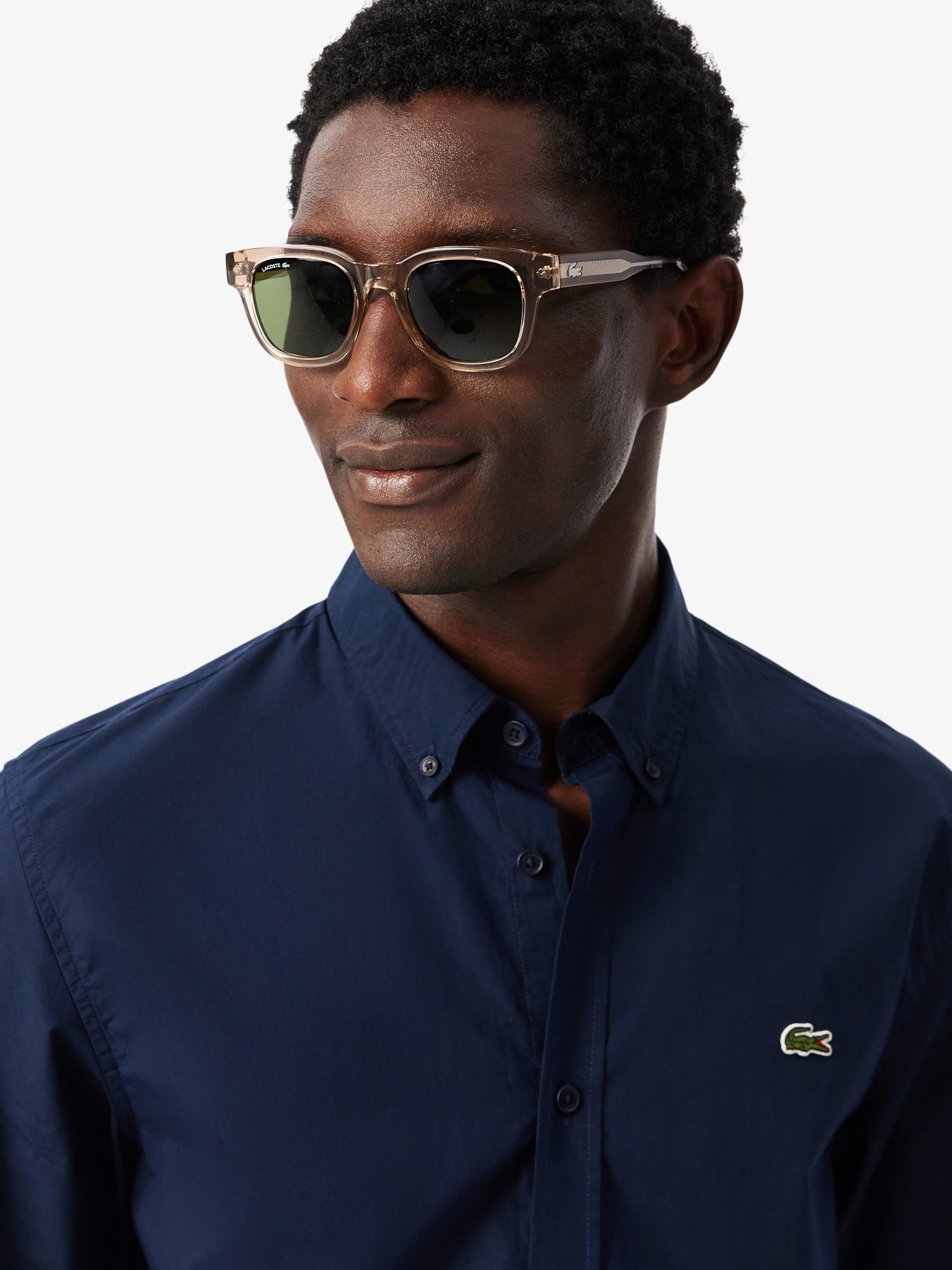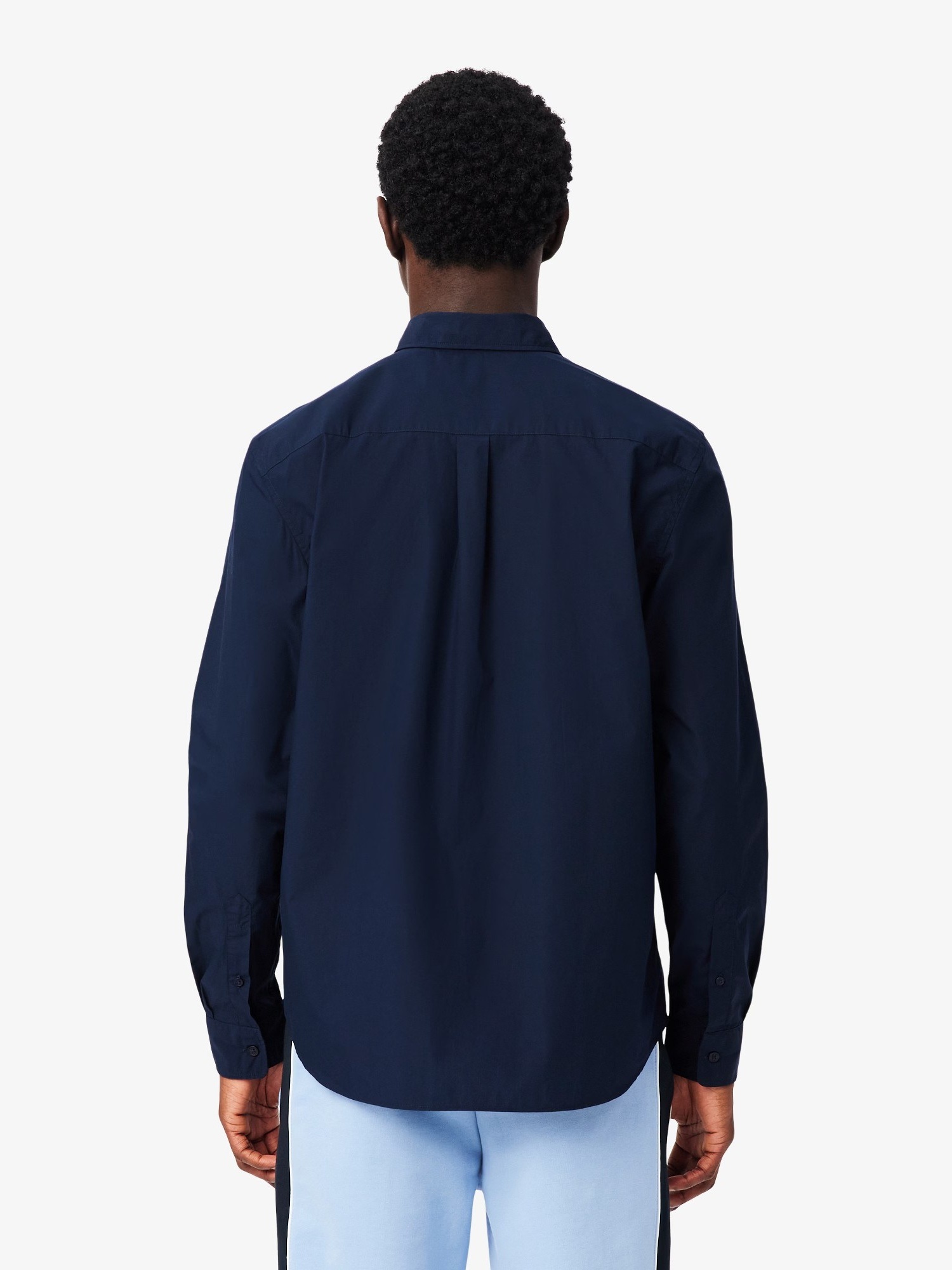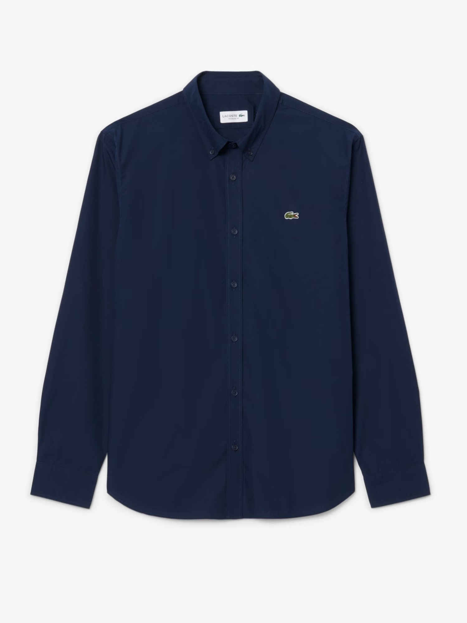 Camicia in popeline di cotone elasticizzato con bottoni in corozo tono su tono e coccodrillo ricamato sul petto.