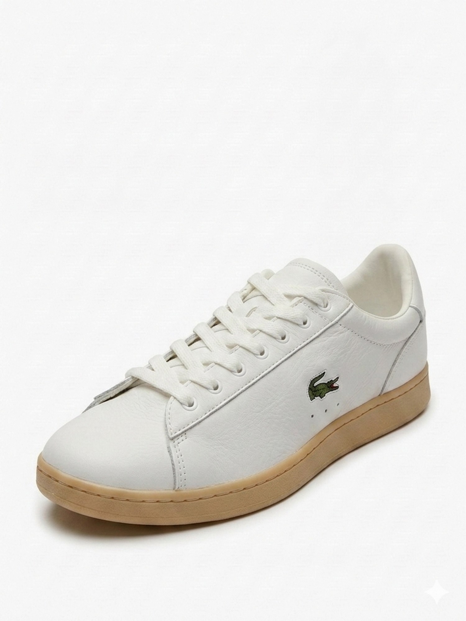 Sneaker con tomaia in pelle, logo Lacoste stampato a contrasto sul contrafforte del tallone, pannelli laterali traforati, suola in gomma testurizzata e stampa coccodrillo a contrasto sul pannello centrale.