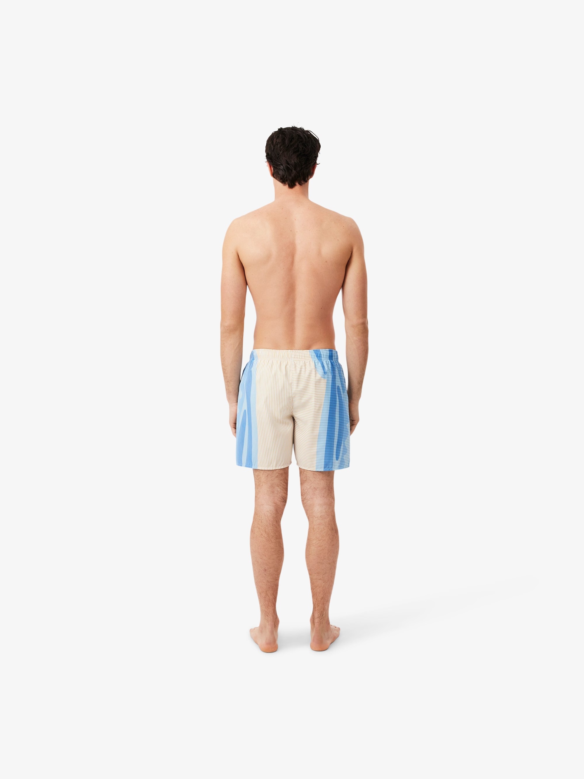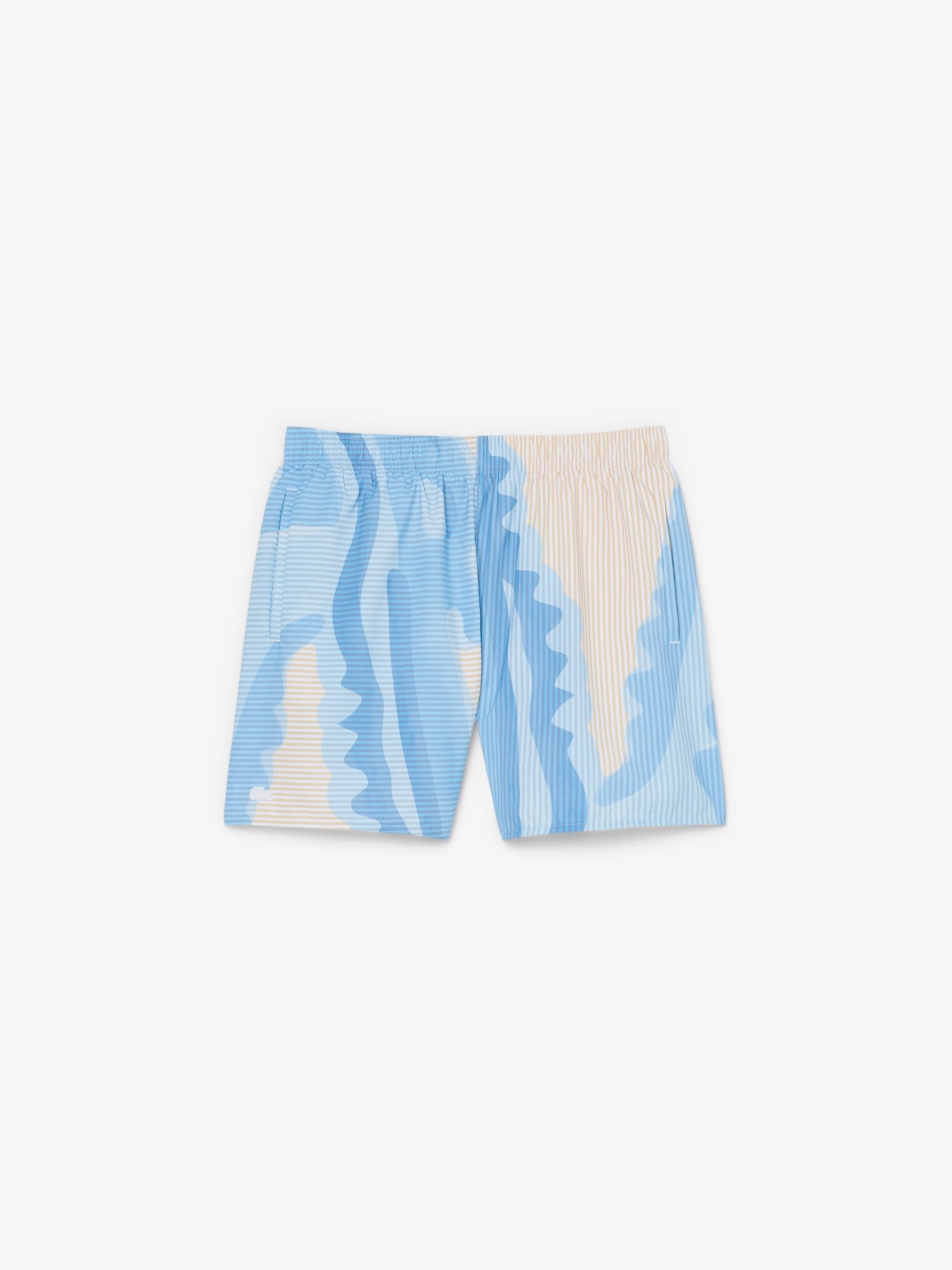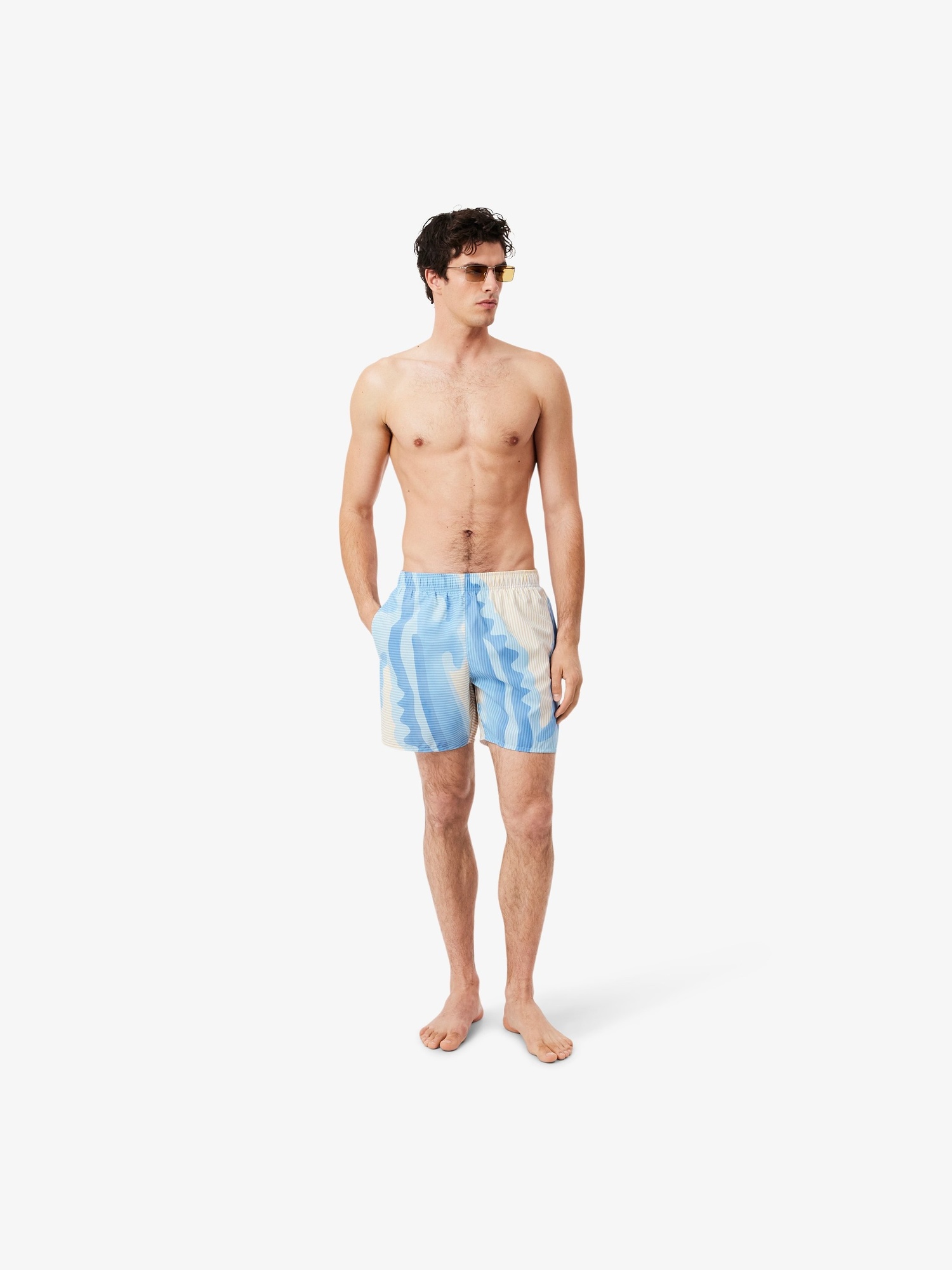 Costume da bagno in poliestere riciclato con vita elasticizzata con cordoncini regolabili, slip in mesh integrati e due tasche a filetto sui lati.