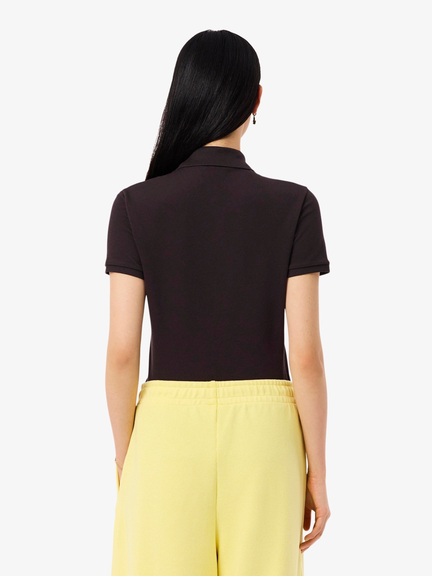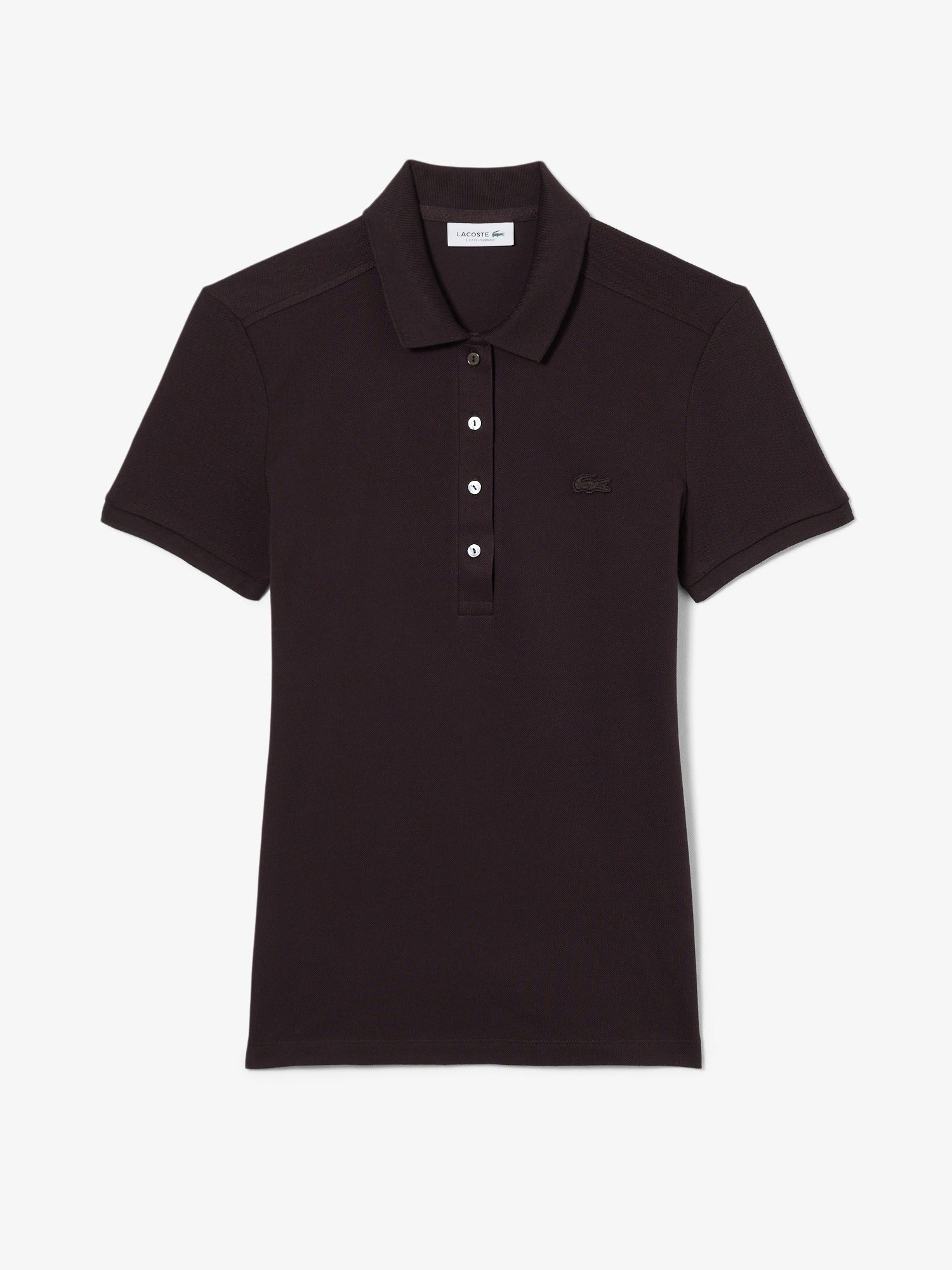 Polo in piqué di cotone stretch, colletto a costine con quattro bottoni effetto madreperla, finiture a costine alle estremità della manica e logo con coccodrillo tono su tono ricamato sul petto.