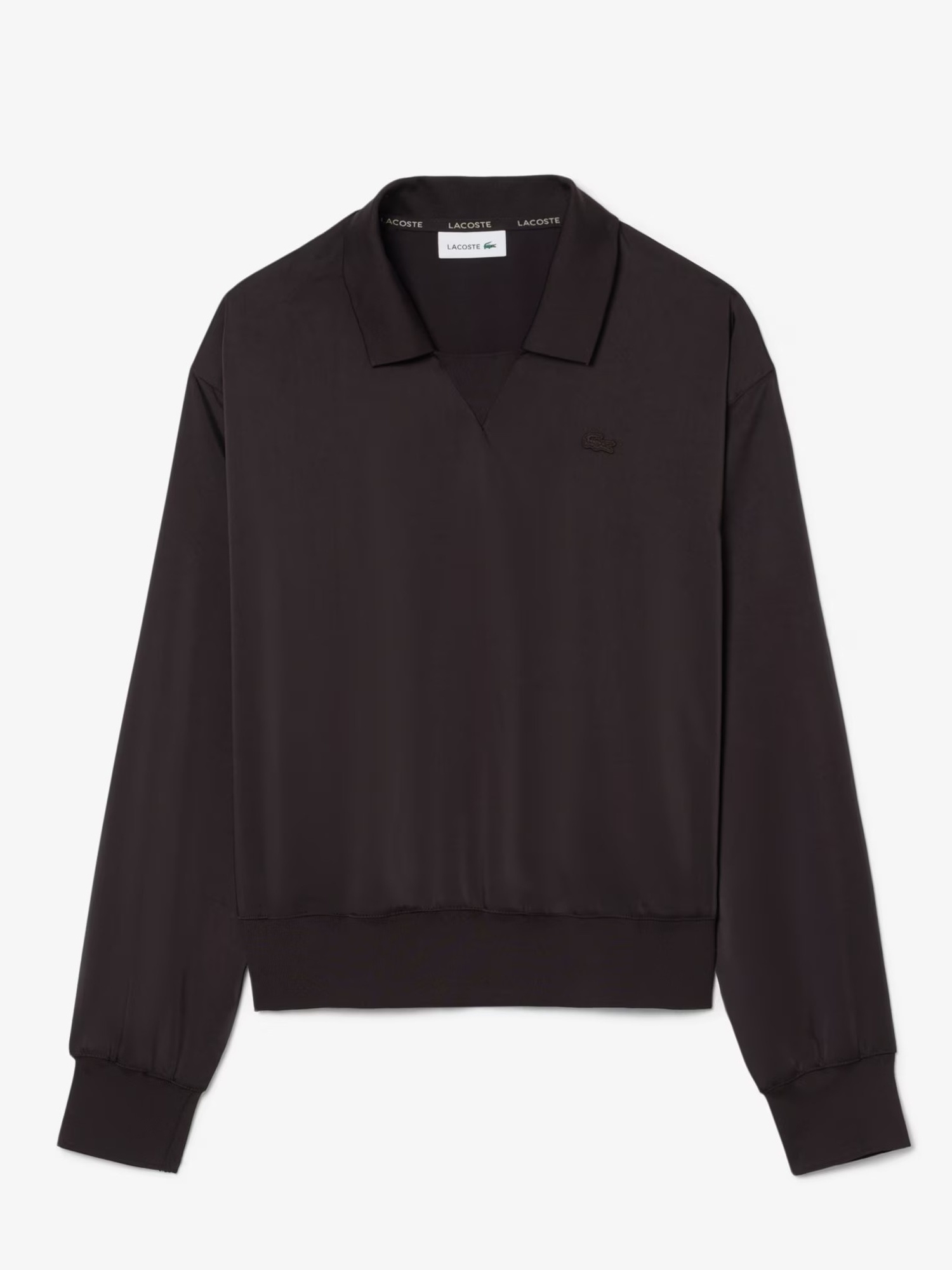 Polo in tessuto satinato con collo rétro, coste su collo, polsini e orlo e coccodrillo tono su tono ricamato sul petto.