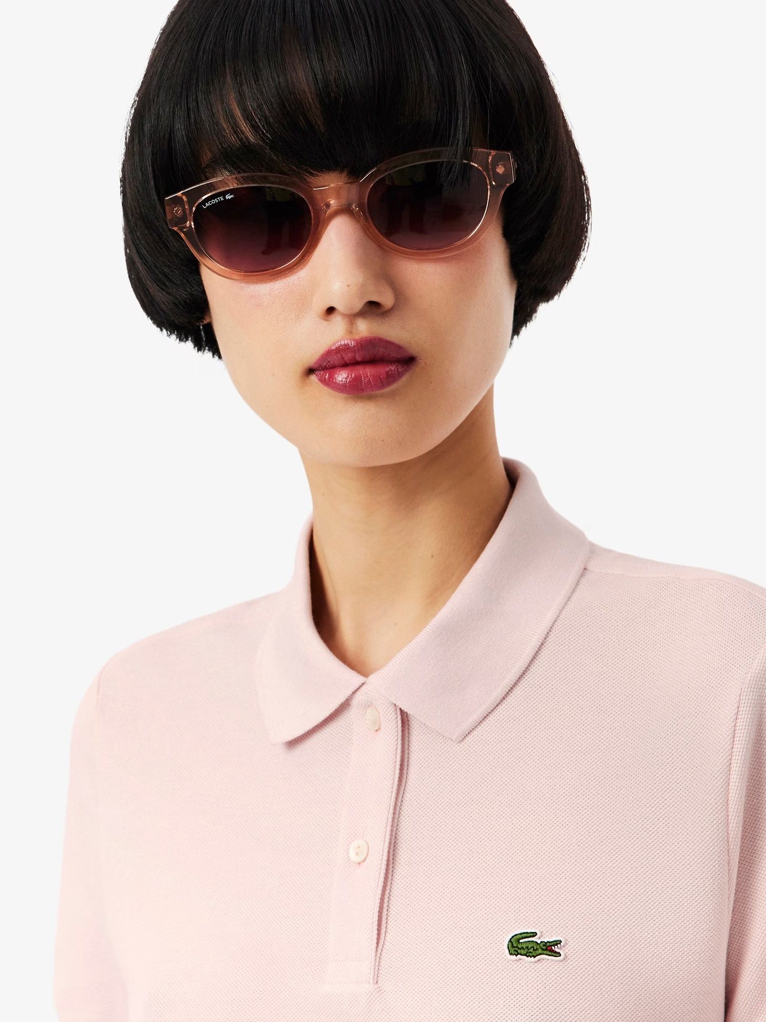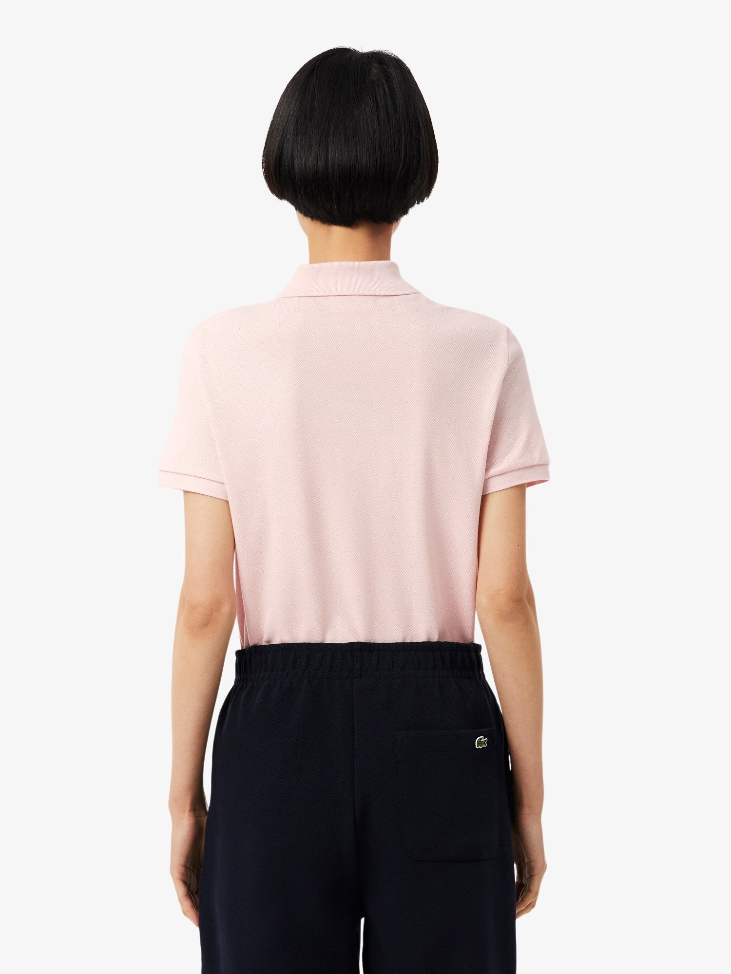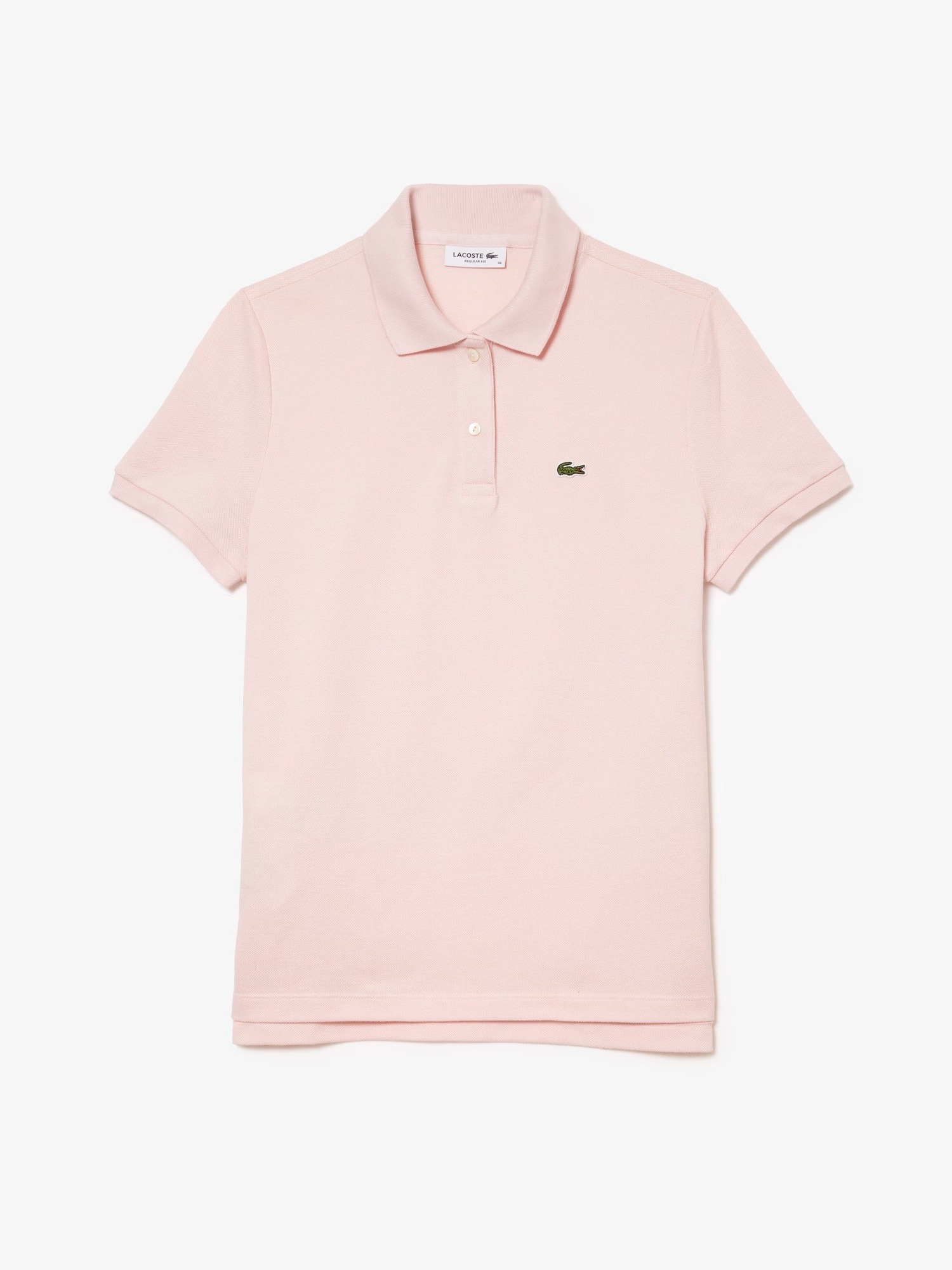 Polo morbida in piqué di cotone, colletto a costine e due bottoni in madreperla, polsini a costine e coccodrillo verde ricamato sul petto.
