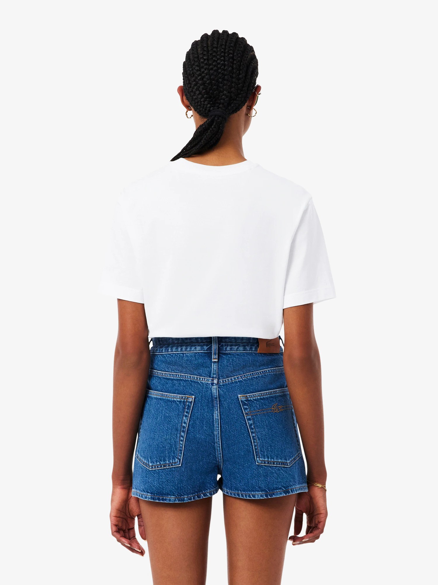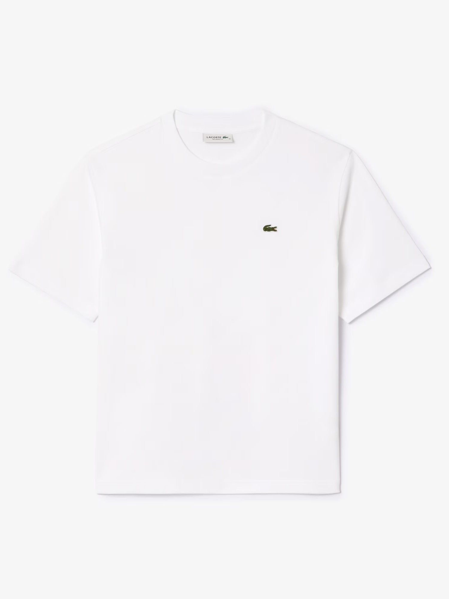 T-shirt in jersey di cotone, fit comodo, collo rotondo a contrasto e coccodrillo ricamato sul petto.