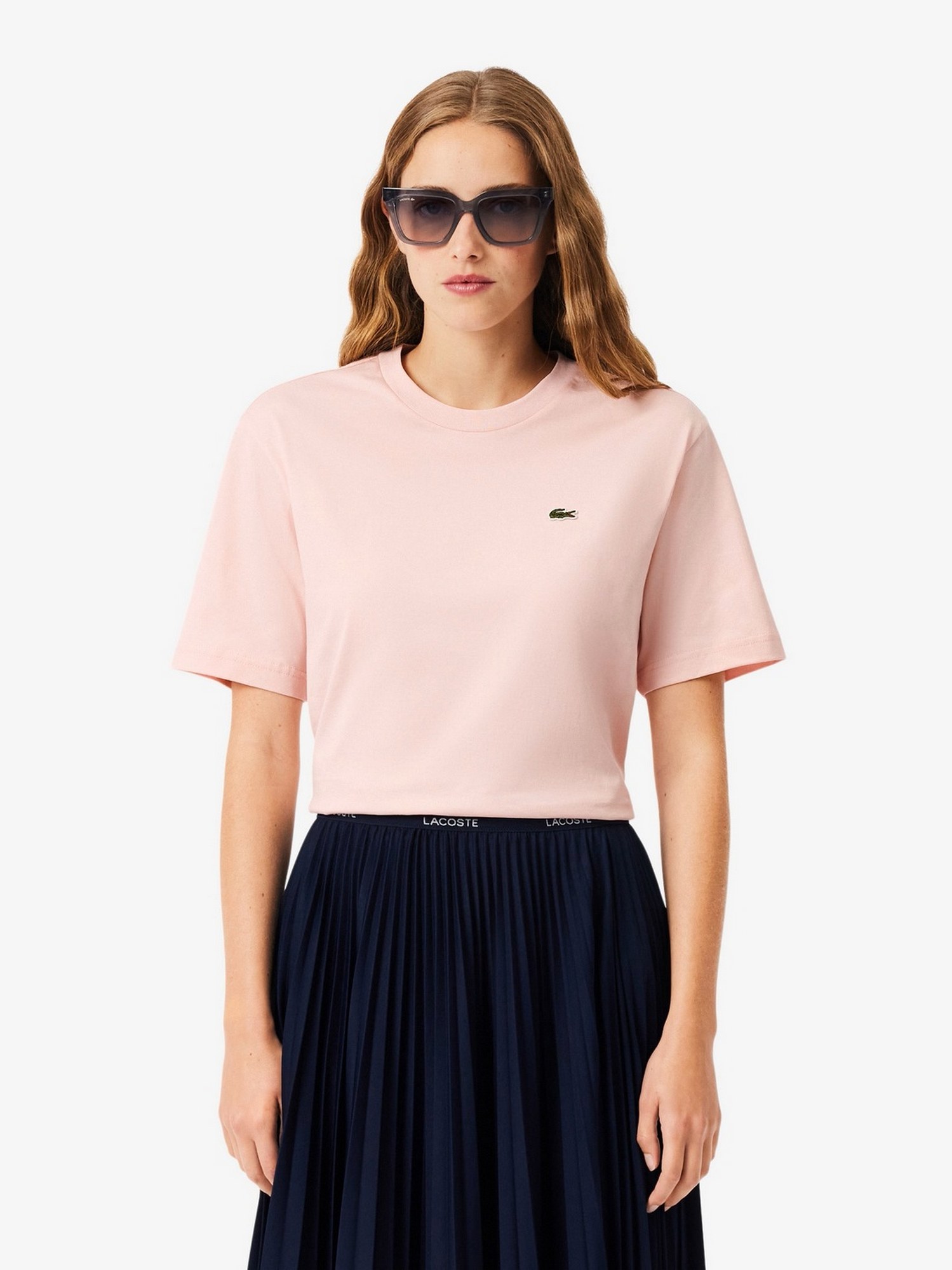 T-shirt in jersey di cotone, fit comodo, collo rotondo a contrasto e coccodrillo ricamato sul petto.