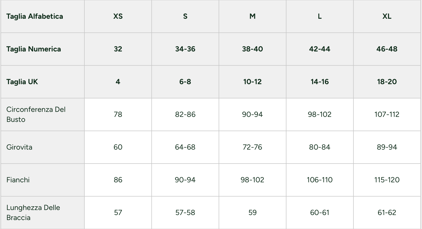 Scegli una taglia