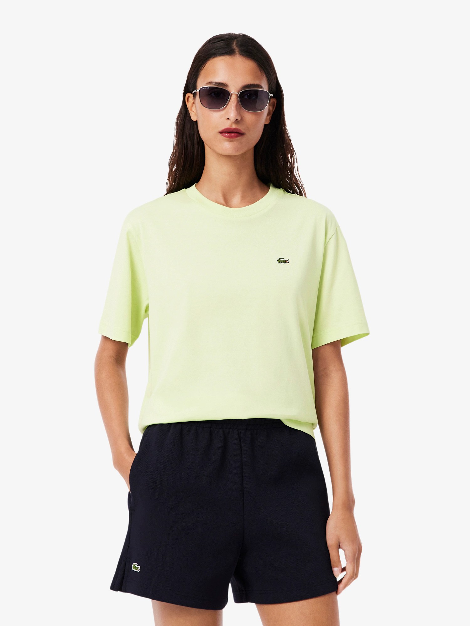 T-shirt in jersey di cotone, fit comodo, collo rotondo a contrasto e coccodrillo ricamato sul petto.
