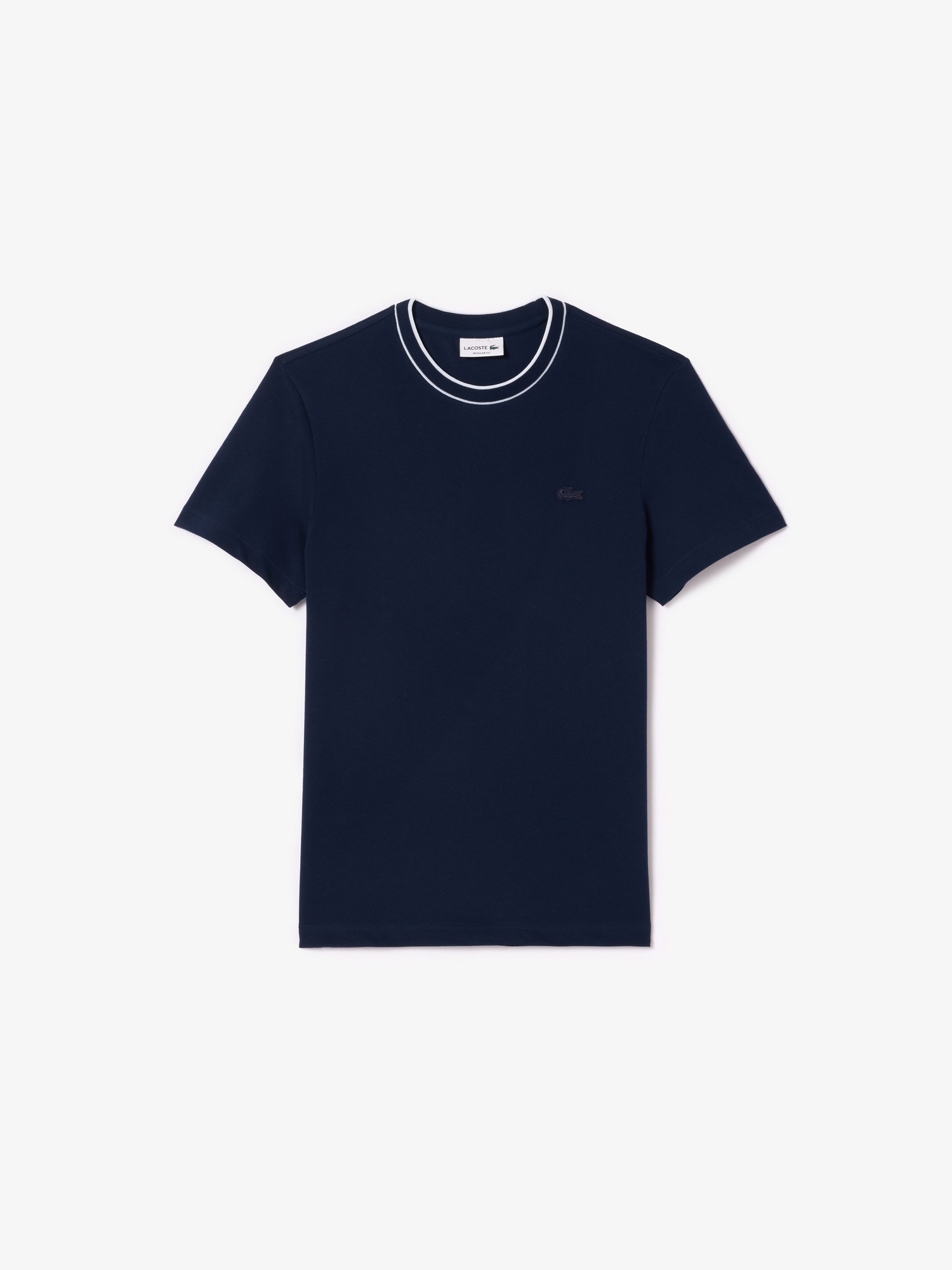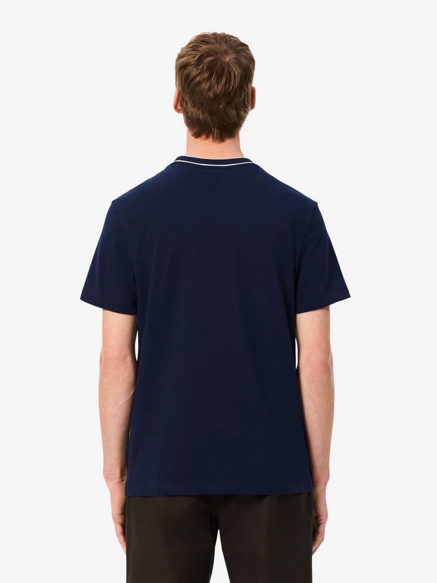 T-shirt in piqué di cotone organico con colletto a costine a righe e coccodrillo tono su tono ricamato sul petto.